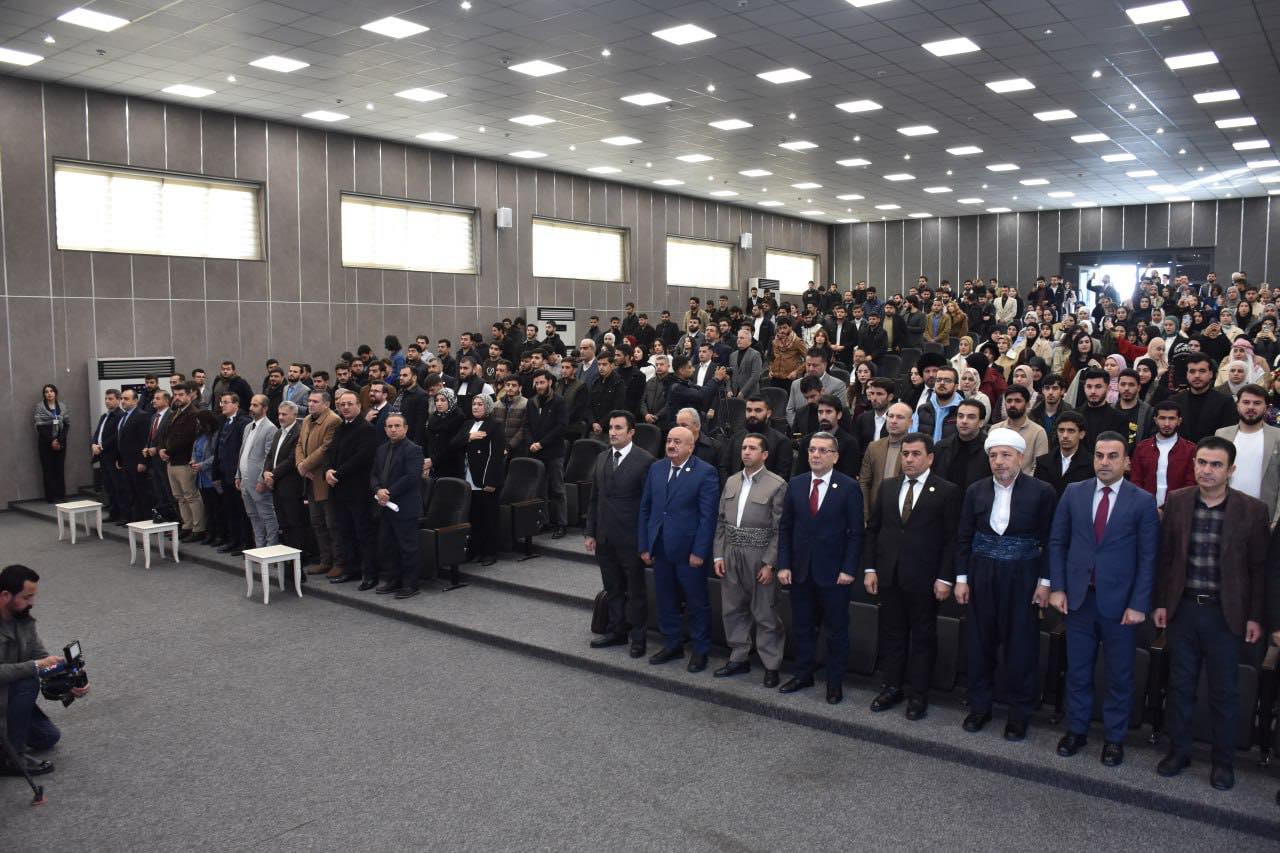 Monday, January 26, 2026 سەرلەبەیانی ئەمڕۆ لە هۆڵی کوەیت لە کۆلێژی زانستە ئیسلامیەکان دیدارێکی هاوبەشی هەر سێ کۆلێژی زانستە سیاسیەکان و زانستە ئیسلامیەکان و کۆلێژی ئاداب بەڕێووەچوو کە تێیدا سەرۆکی زانکۆی سەحەلاحەددین پ.د. کامەران یونس محمد امین بە یاوەری بەشێکی زۆری ڕاگری کۆلێژەکان و مامۆستایان و قوتابیان تێیدا ئامادەبوون. لەچوارچێوەی پانێلێکدا پرسەکە بە شیوەیەکی زانستیانە شرۆڤەکراو و لە کۆتایدا سوپاس و پێزانین لە لایەن سەرۆکی زانکۆی سەلاحەددینەوە پێشکەش بە پانێلیستەکان و بەرێوەبەری پانێل کرا. Gallery