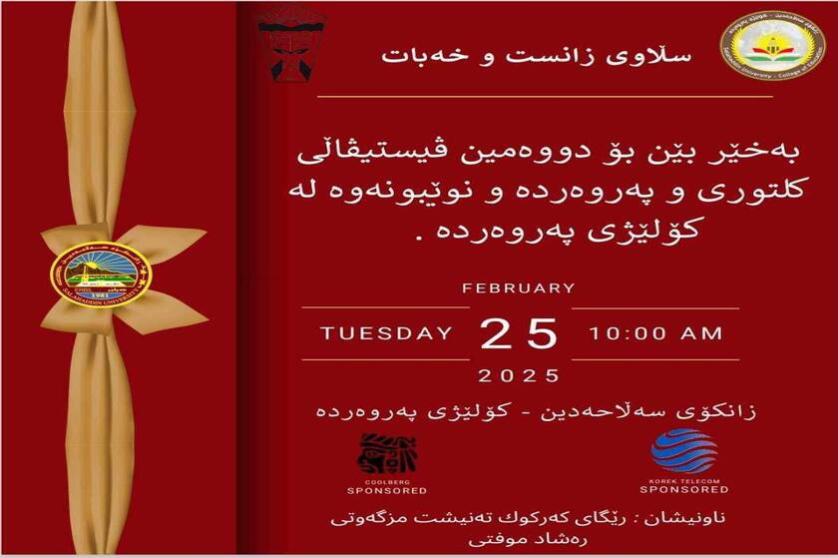 Salahaddin University-Erbil (SUE), in partnership with the Kurdistan Students’ Union, is set to host the second cultural, educational, and innovation festival at the College of Education on 25 February 2024.