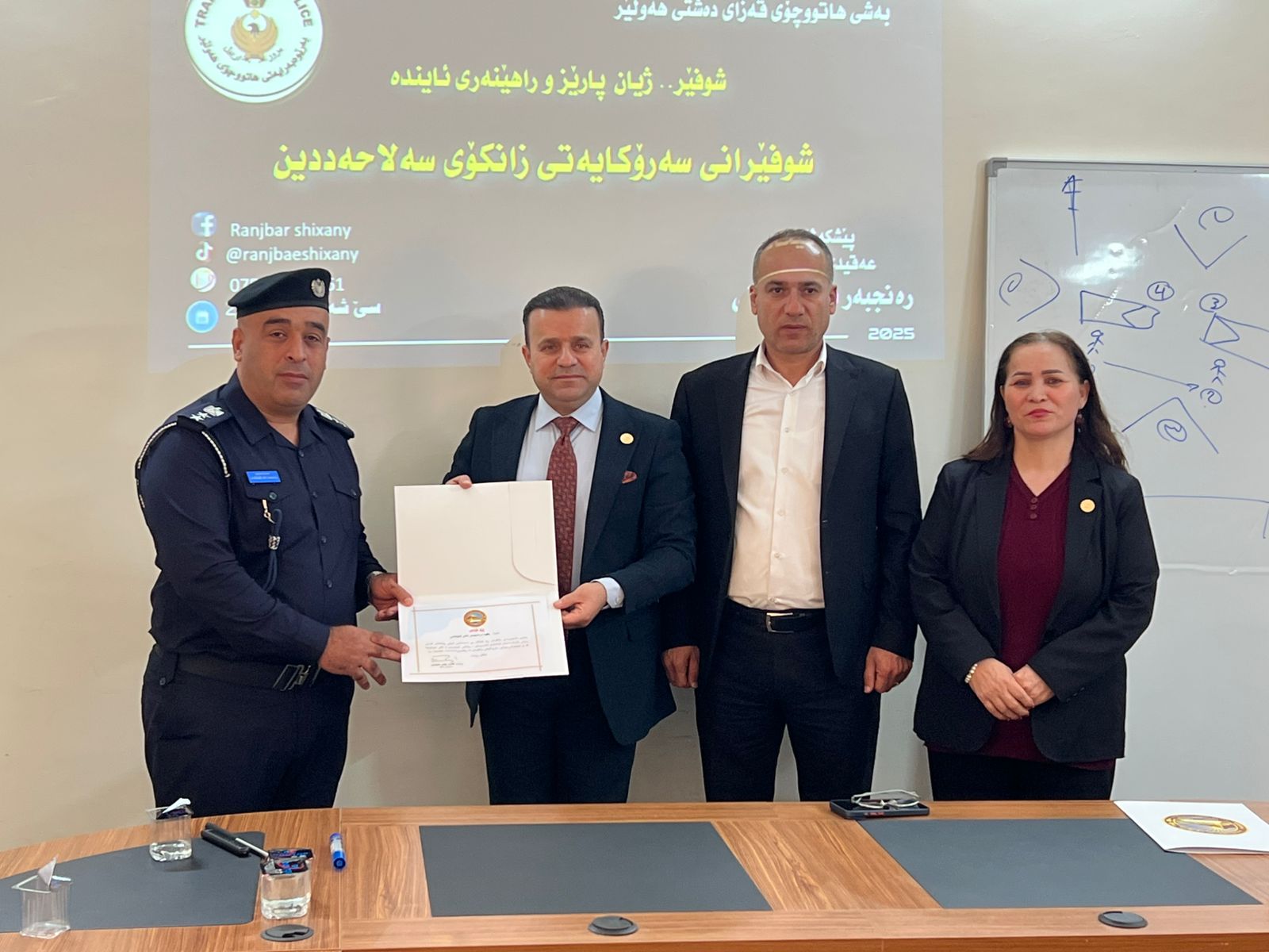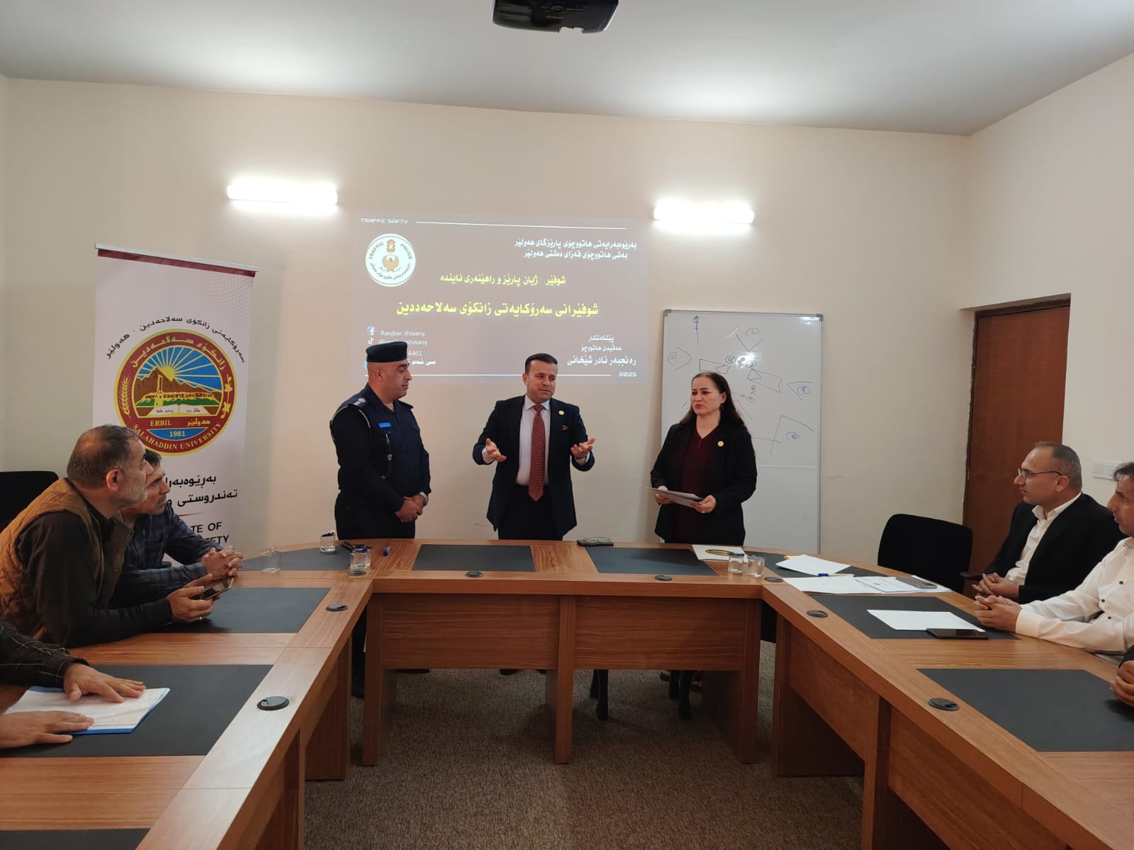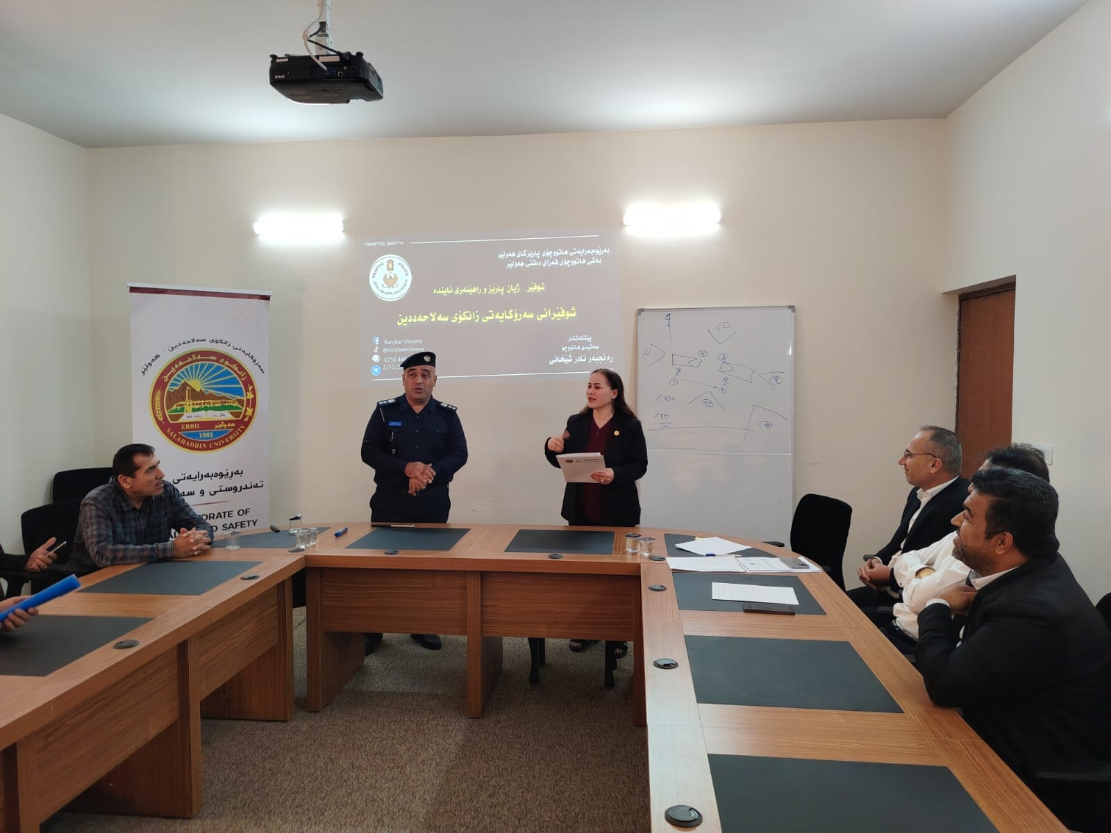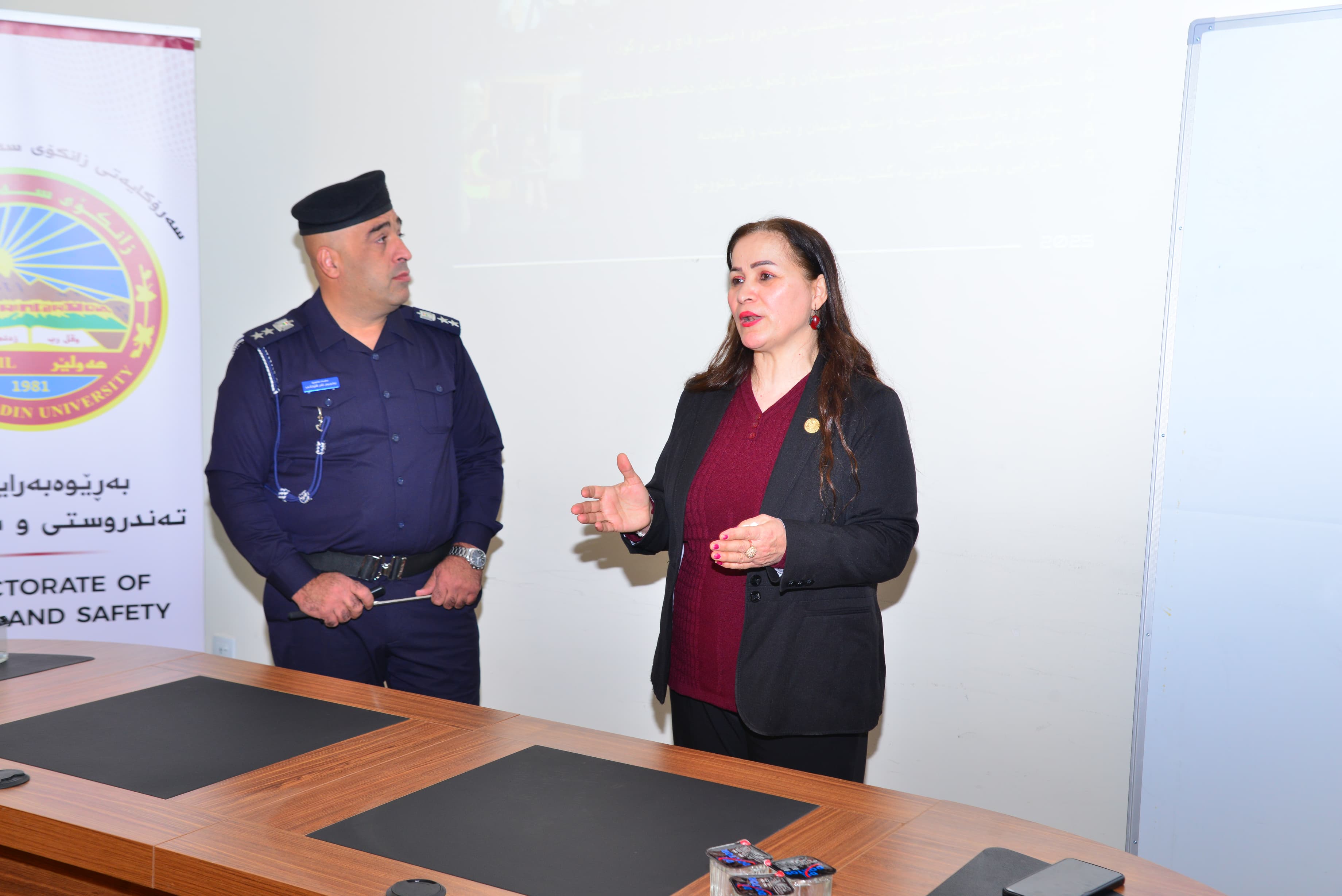 بەڕێوەبەڕایەتی تەندروستیی و سەلامەتی بەهەماهەنگی بەڕێوبەرایەتی هاتووچۆی دەشتی هەولێر و بەئامادەبوونی یاریدەدەری سەرۆکی زانکۆ بۆ کارگێری و دارایی بەڕێز (د.حسێن سعدی ابراهیم ) وە بەڕێوەبەری کارگێری زانکۆمان بەڕێز(هندرێن طاهر حاجی) بەڕێوەبەری تەندروستی و سەلامەتی بەڕێز(ئاریان حسێن دزەیی) هەڵسا بە بەڕێوەچوونی وۆرك شۆپێک لەپێناو بڵاوکردنەوەی هۆشیاری تەندروستی و پاراستنی تاک و جێ بەجێ كردنی ڕێنماییەکانی هاتووچۆ بۆ خۆپارێزی تاک و سەلامەتی گواستنەوەی مامۆستایان و فەرمانبەران و قوتابیان وە نەشڵەژان و خۆ بەدوورگرتن لەهەڵچوون لەکاتی شوفێری دا كەلەلایەن بەڕێز” عقید رەنجبەر شیخانی”کۆمەڵێک زانیاری بە سوود پێشکەش کرا و کۆمەڵیک پرس ئاڵوگۆڕ کران و پاشان ڕێزلێنان پێشکەش بە عەقیدی ڕاهێنەر کرا