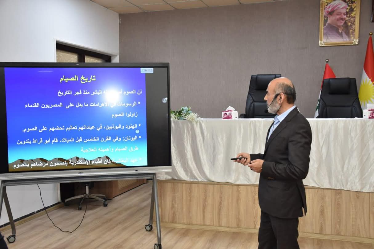 لەدرێژەى کاروچالاکیەکانماندا بەڕێوەبەرى تەندروستى و سەلامەتى ڕۆژى سێ شەممە رێكهوت ٢٠٢٦/٢/٢٤ ۆورك شۆپێك ئهنجام درا به ههماههنگی هۆبهی تهندروستی و سهلامهتی له كۆلێژی زانسته سیاسیهكان بهناونیشانی كاریگهریی مانگی پیرۆزی رهمهزان له سهر ئهدای مامۆستاو قوتابی و سوود وهرگرتن له رۆژووگرتن;كه تیایدا (٤٩) بهژداربوو له مامۆستایان و قوتابیان و فهرمانبهران