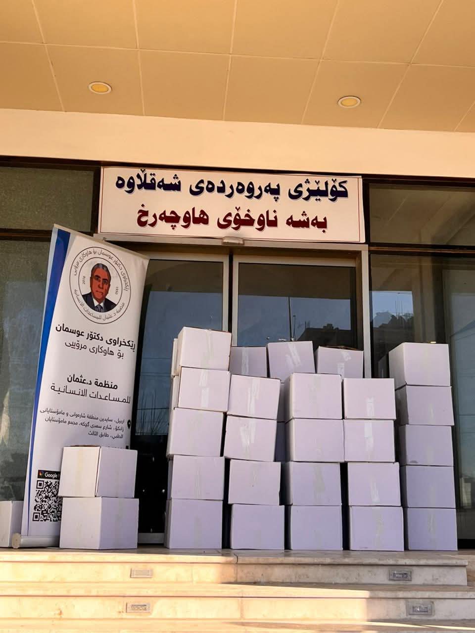 لە درێژەی کارو چالاکییەکانی بەرێوبەرایەتی تەندروستی و سەلامەتیسەرۆکایەتی زانکۆمان ڕۆژى دووشەممە ڕێکەوتى ٢٠٢٦/٢/١٦ هەڵسا بە دابین كردنی سهبهتهی خۆراك به ههماههنگی رێكخراوی د.عثمان بۆ هاوکارى مرۆیى بۆ گشت به شهناوخۆكانی كۆلێژی پهروهردهی شقلاوه كه ژمارهیان (٦)بهشه ناوخۆییه.