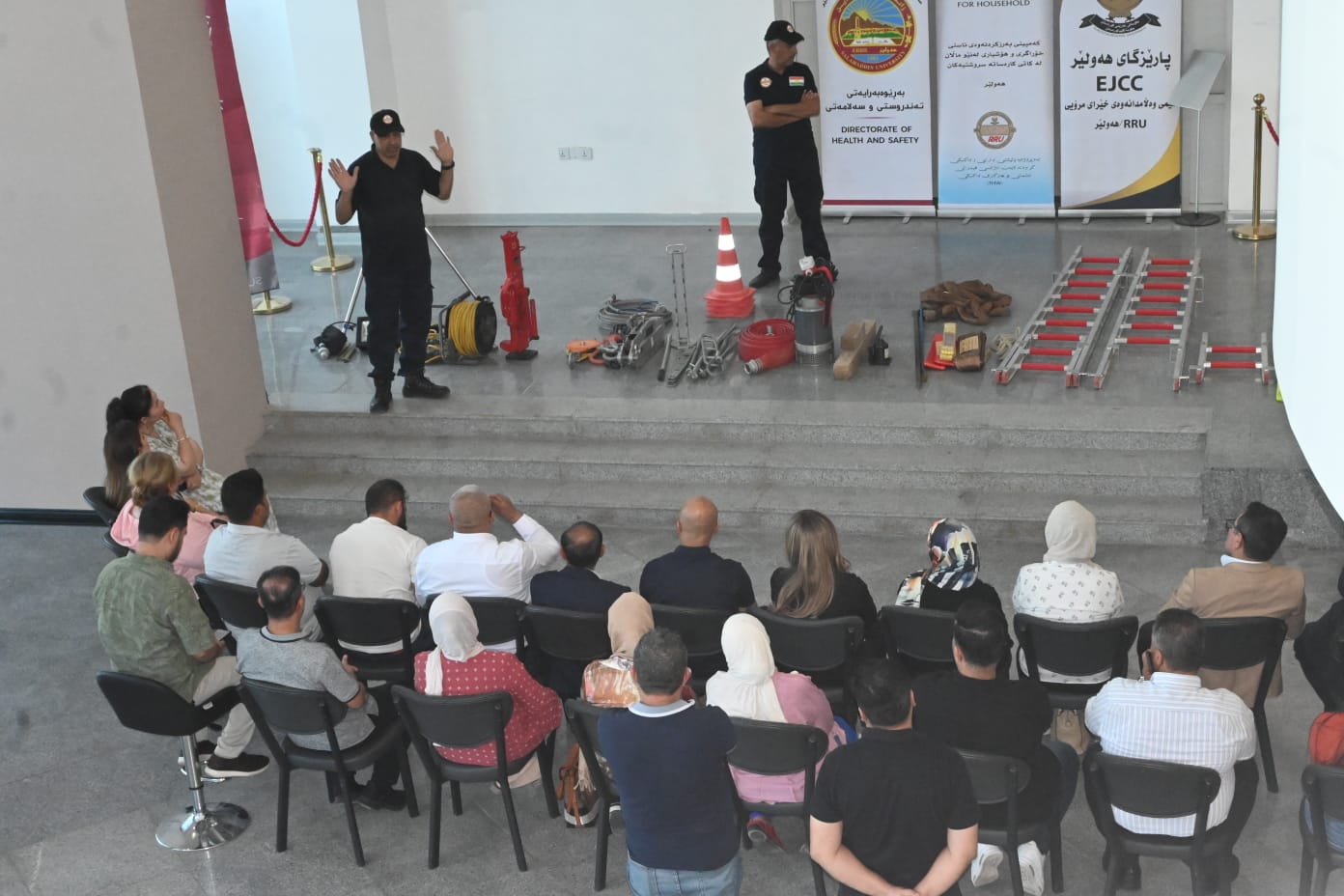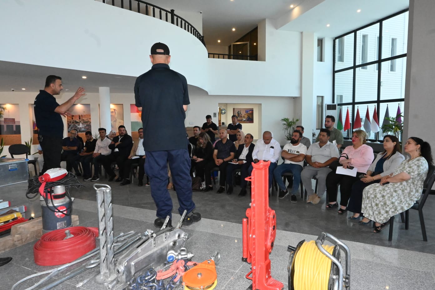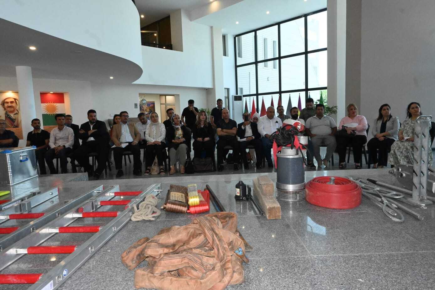 ئەنجامدانى خولى ئاگرکوژێنەوە و فڕیاگوزارى سەرەتایى وەحاڵەتى لەناکاوى بومەلەرەزە بە هەماهەنگى لەگەڵ بەڕێوەبەرایەتى کۆچ و کۆچبەران و بەدواداچوون لە پارێزگاى هەولێر بۆ ماوەى سێ رۆژ ڕێکەوتى ١٧- ١٨- ٢٠٢٥/٦/١٩ بۆ گشت بەرپرسی تەندروستى وسەلامەتى وفەرمانبەرەکانی گشت کۆلێژو بەڕێوەبەرایەتى وسەنتەرەکان بۆ ئەوەى زیاتر شارەزابن لە شێوازى بەکارهێنانى بوتڵى ئاگرکوژێنەوە لە هەر حاڵەتێکى نەخوازراودا لەسەنتەرى رۆشنبێرى ئەکادیمى زانکۆ ئەنجام دەدرێت پێویستە هەمووان ئامادەبن