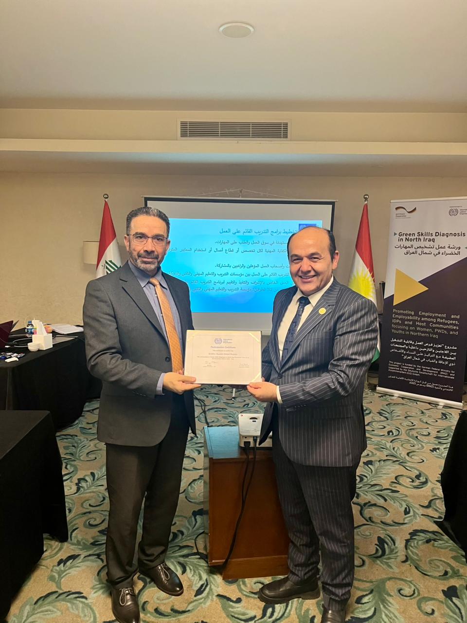 لە درێژەی هەوڵە بەردەوامەکانی سەنتەری پەرەپێدانی كار و كارسازی زانكۆی سەلاحەدین لەبواری پەرەپێدانی تواناكان بۆ بازاڕی کار، "م.حسین احمد مصطفى"، بەڕێوەبەری سەنتەر، بە نوێنەرایەتی وەزارەتی خوێندنی باڵا و توێژینەوەی زانستی و زانكۆی سەلاحەدین بەشداری لە وێركشۆپی دەستنیشان كردنی كارامەییەكانی پیشەی سەوز و دیزاینكردنی ڕاهێنان لە سەر بنەمای كار لە هەرێمی كوردستاندا کرد، کە لەلایەن ڕێکخراوی کاری نێودەوڵەتی (ILO) لە ماوەی نێوان 24 تا 26ی تشرینی دووەمی ساڵی 2025 بەڕێوەچووە.
