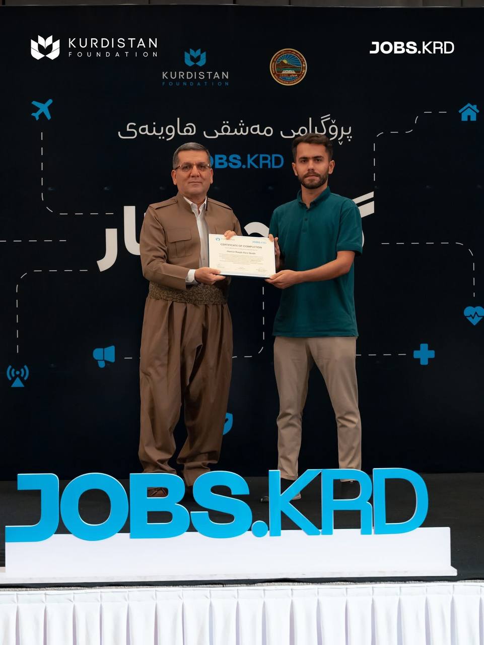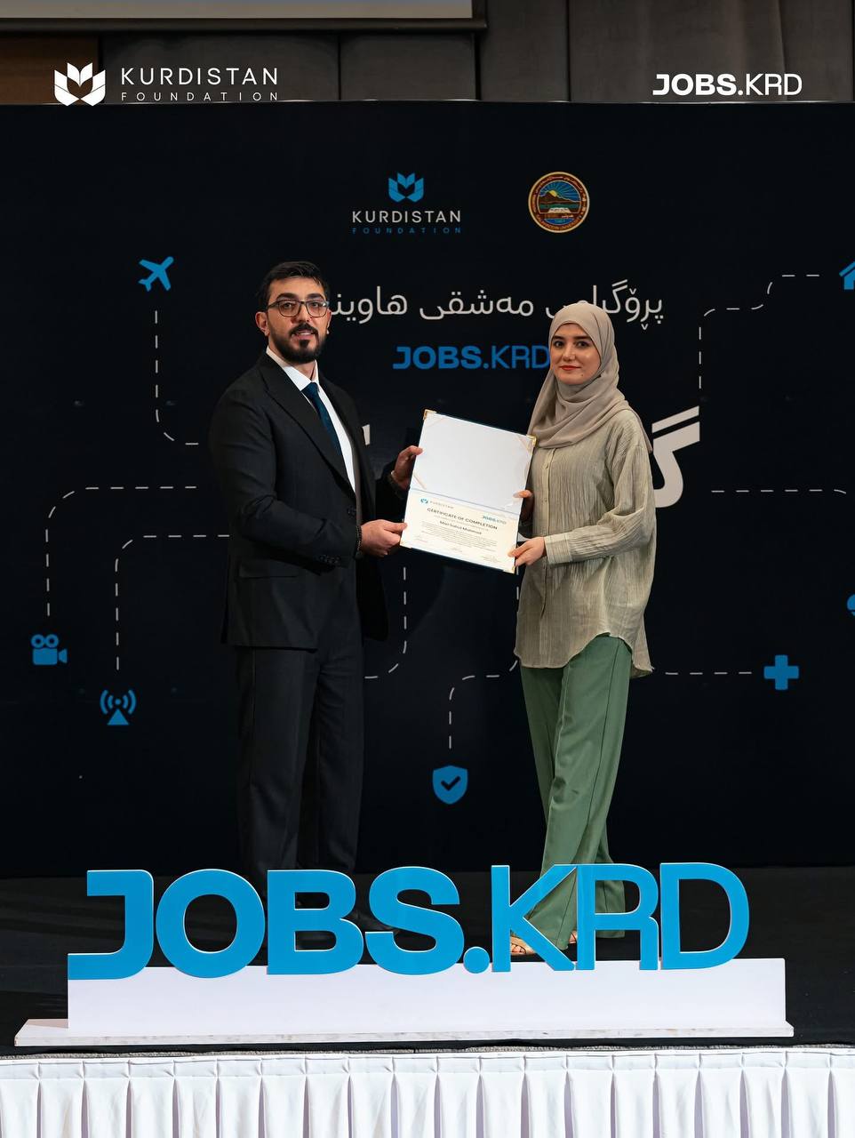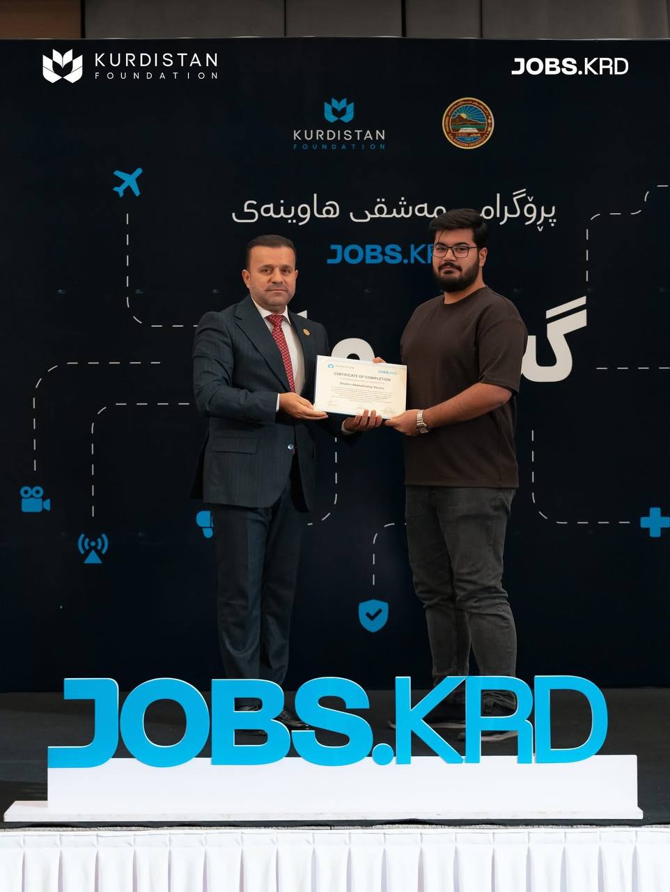 On 3 September 2025, in the presence of Prof. Dr Kamaran Younis M. Amin, President of Salahaddin University-Erbil (SUE), Dr Yara Barzanji, Director of Kurdistan Foundation, Prof. Dr. Hussein Saadi, Vice President of the University for Administrative and Financial Affairs, along with some directors of SUE and staff from Kurdistan Foundation, Jobs KRD, and representatives of participating companies in the Youth and Work program, the closing ceremony was held.