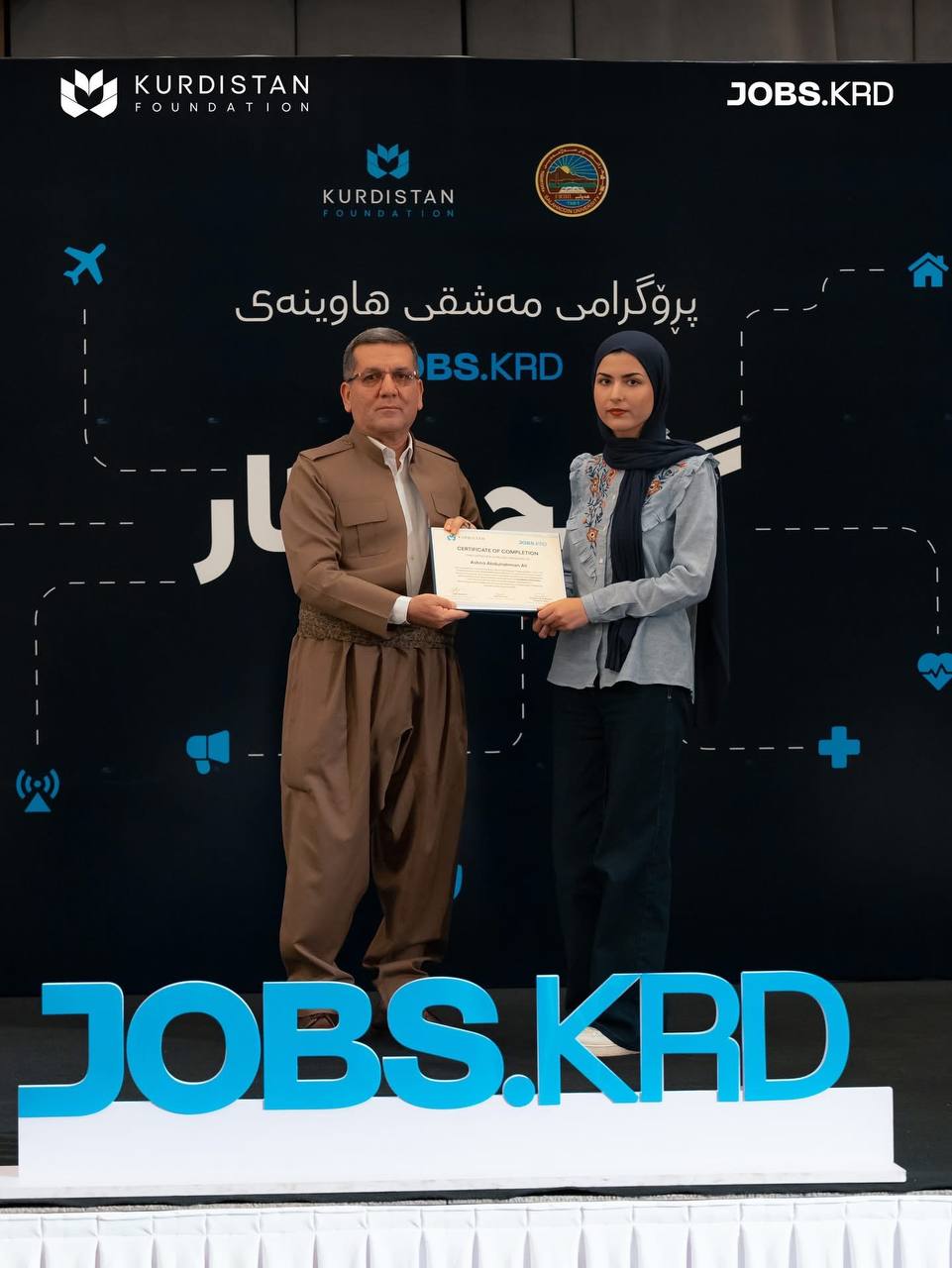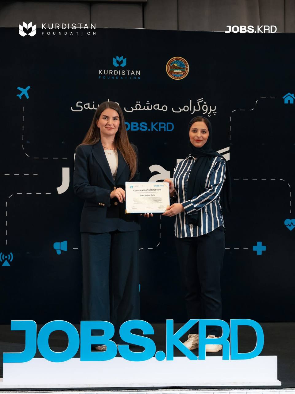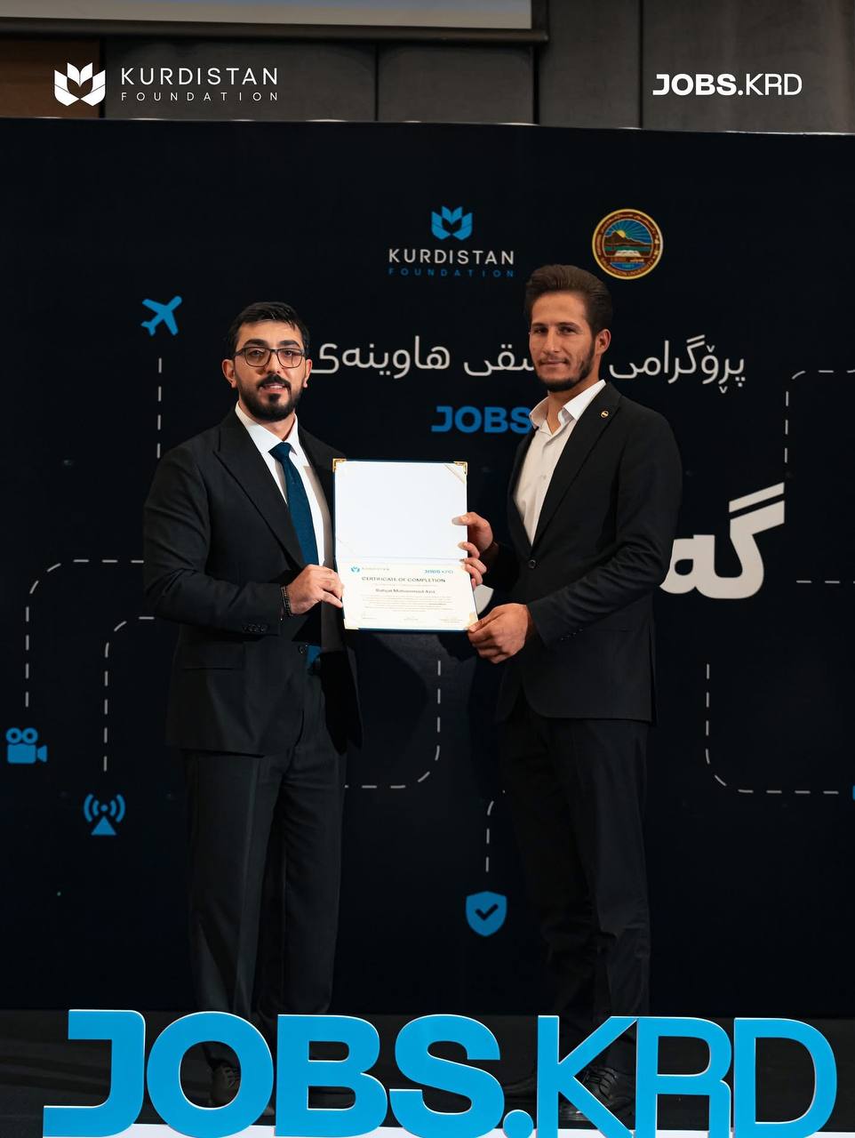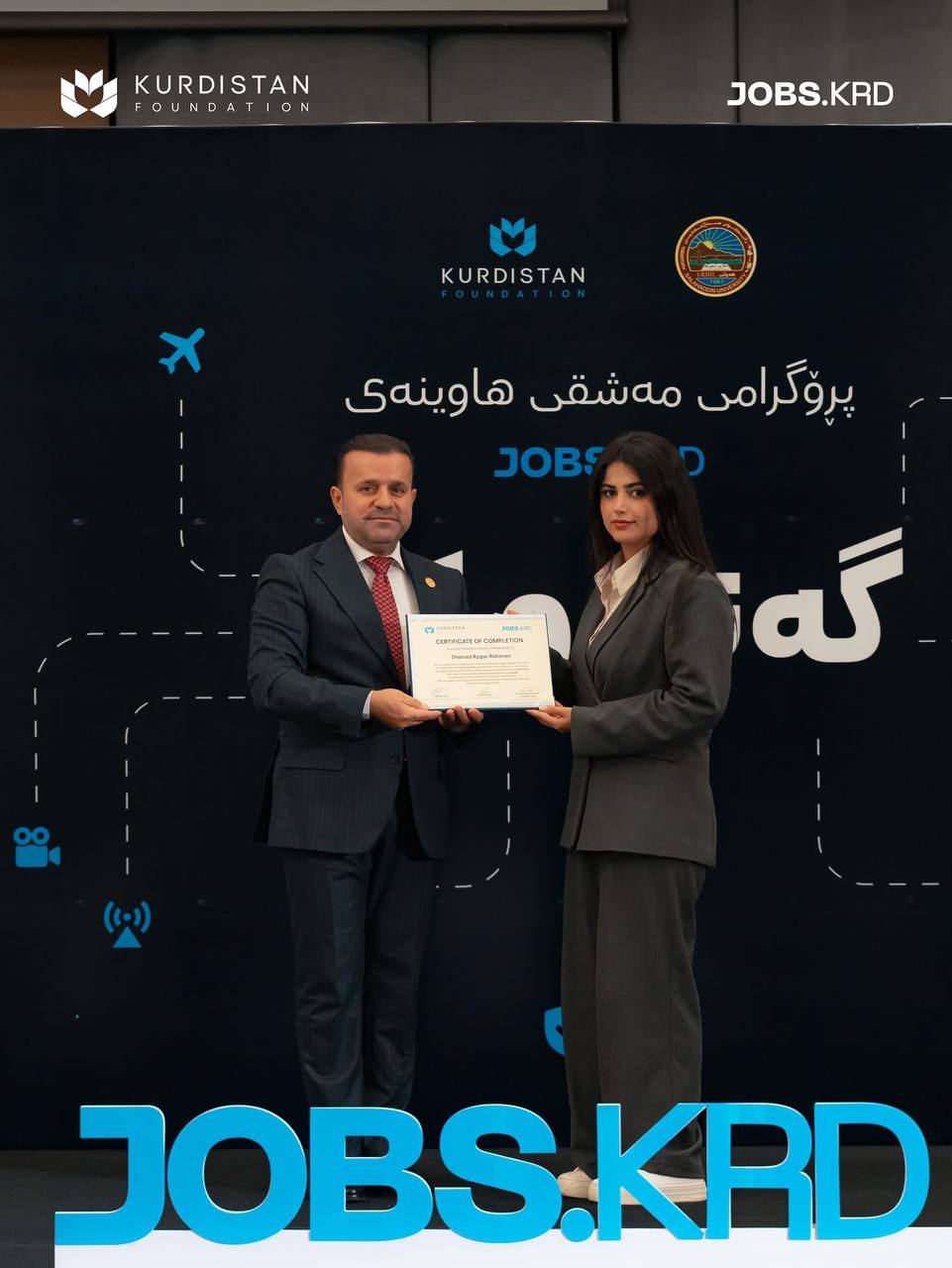 On 3 September 2025, in the presence of Prof. Dr Kamaran Younis M. Amin, President of Salahaddin University-Erbil (SUE), Dr Yara Barzanji, Director of Kurdistan Foundation, Prof. Dr. Hussein Saadi, Vice President of the University for Administrative and Financial Affairs, along with some directors of SUE and staff from Kurdistan Foundation, Jobs KRD, and representatives of participating companies in the Youth and Work program, the closing ceremony was held.