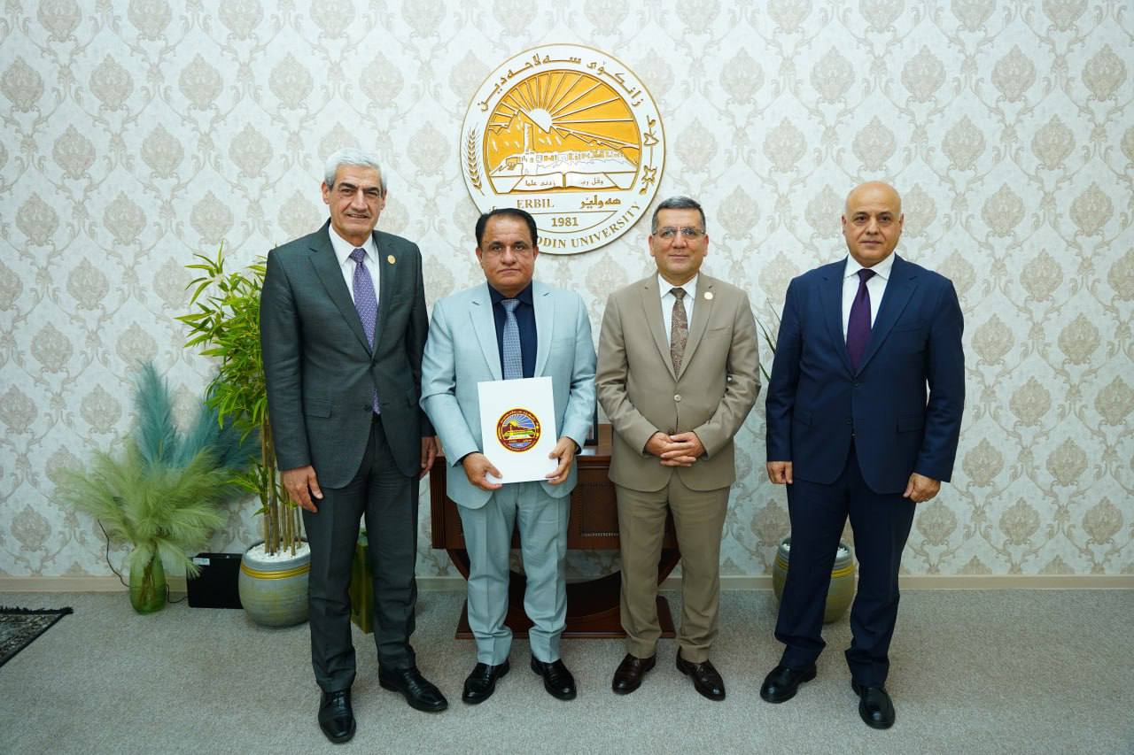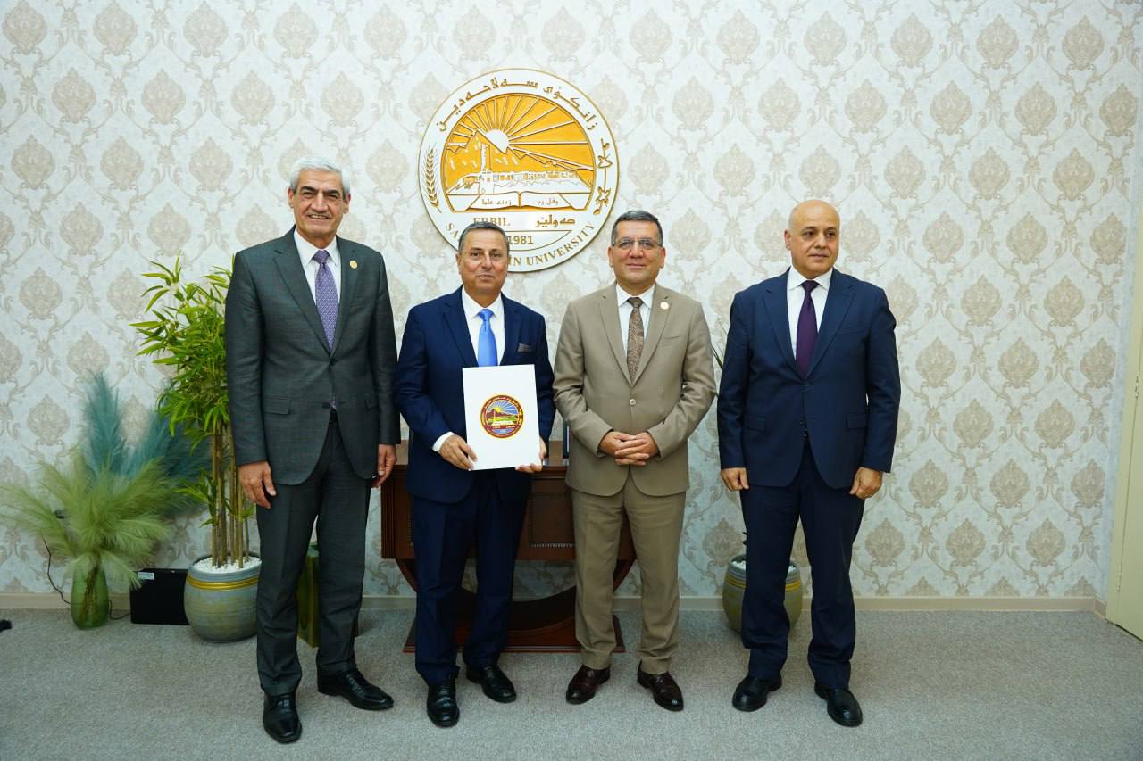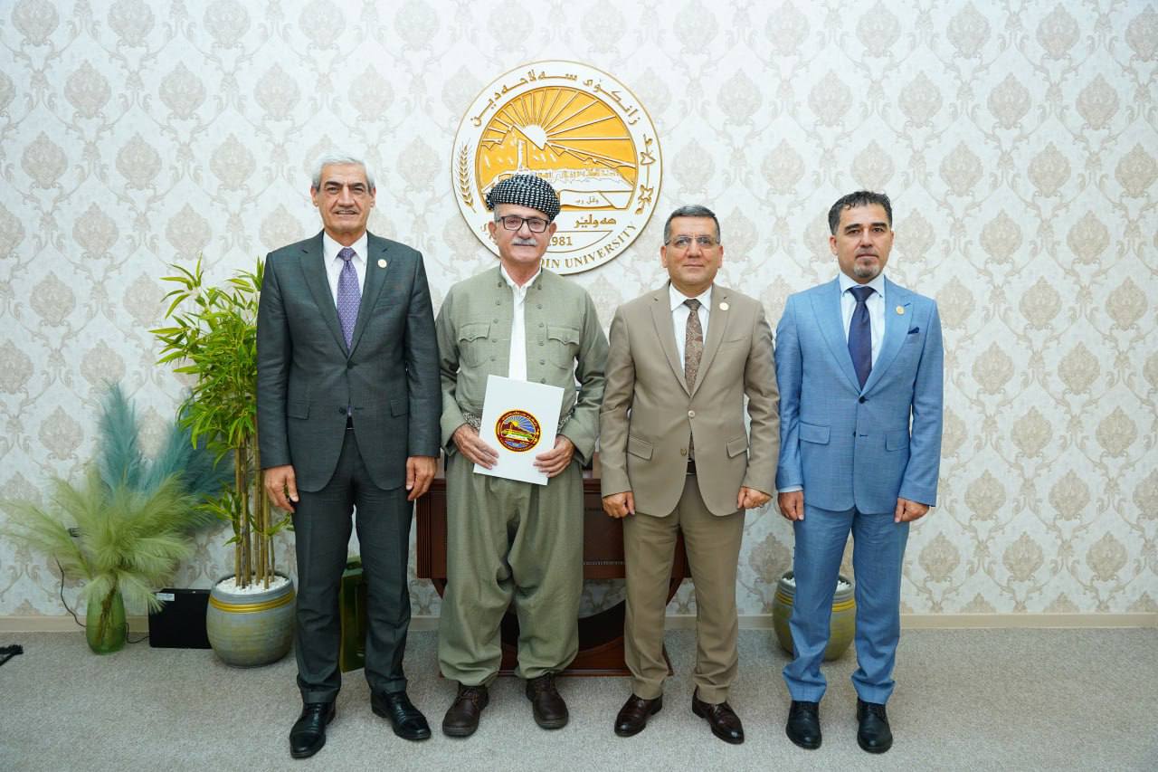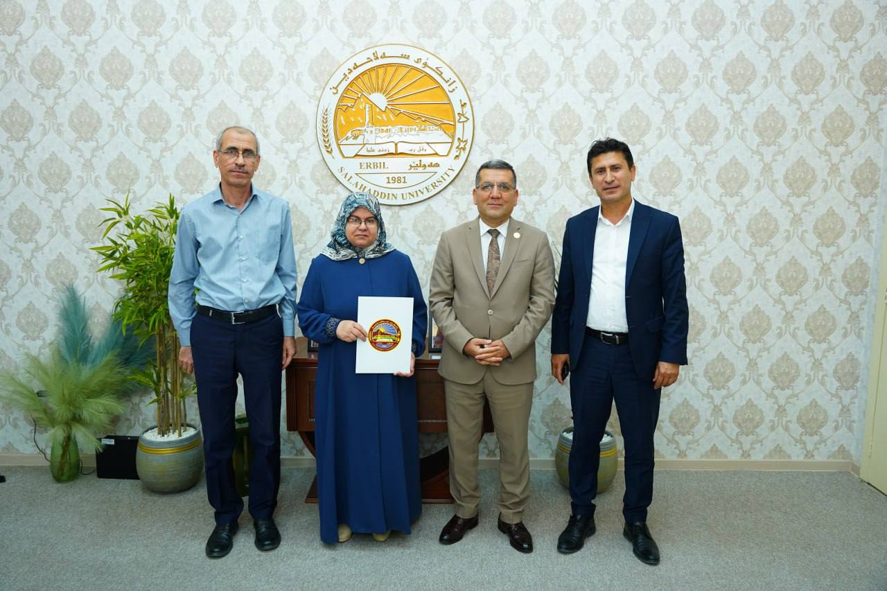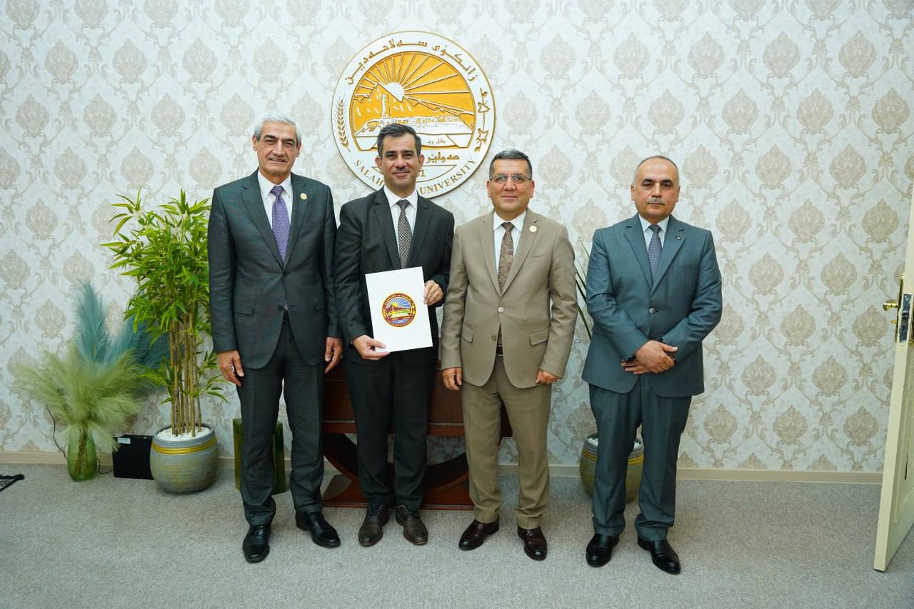 Today, 28 April 2025, Asst. Prof. Dr Kamaran Younis M. Amin, President of Salahaddin University-Erbil (SUE), in the presence of Prof. Dr Shareef Mauloud Shareef, Vice-President for Scientific Affairs and Postgraduate Studies, and a number of deans, awarded the academic title of "Professor" to six distinguished faculty members.