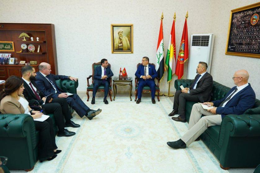 During the meeting, Dr Hemn highlighted the importance of coordination between academic institutions and government bodies, especially in enhancing technical infrastructure. He emphasised plans for future collaboration with SUE, particularly in the development and accreditation of scientific laboratories in line with international standards.