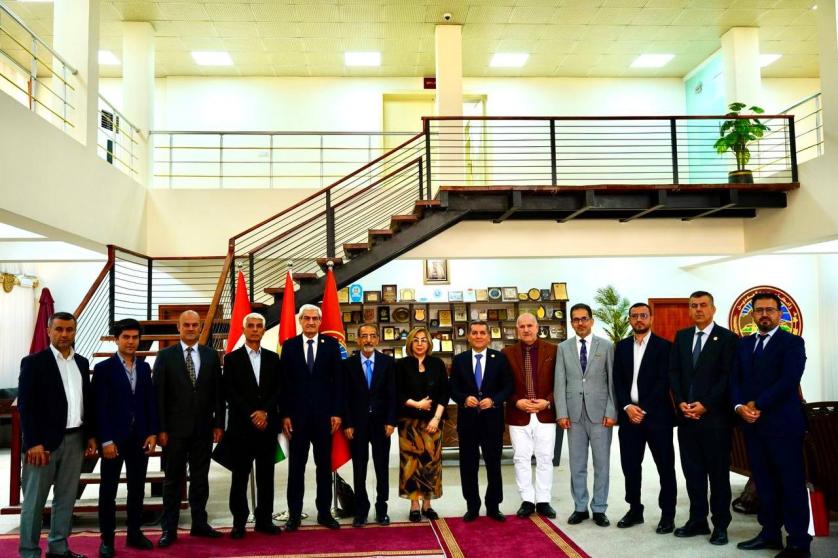 On Tuesday, 18 June 2025, Prof. Dr Kamaran Younis M. Amin, President of Salahaddin University–Erbil (SUE), welcomed Dr Younis Bahram, President of the Kurdish-German University, in the presence of vice presidents from the universities of Hawler Medical, Erbil Polytechnic, and Soran, alongside members of the Kurdistan Board of Universities. The visiting delegation also included Dr Mohammed Mahwi, Dr Sherko Hama-Amin Qadir, Dr Barwa Rasul, and Dr Dastan Jamal.