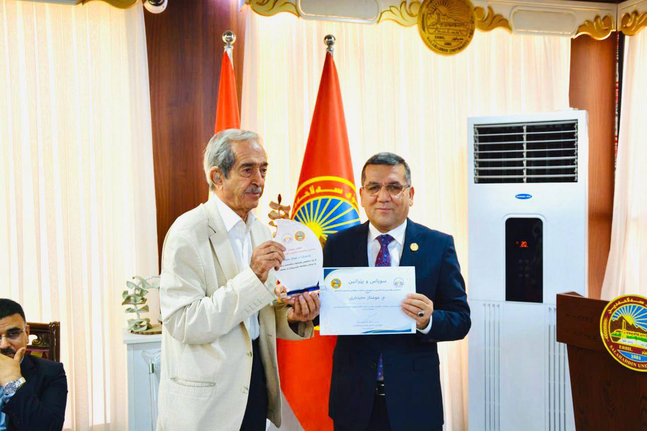 On Sunday, 15 June 2025, Prof. Dr Kamaran Younis M. Amin, President of Salahaddin University-Erbil, in the presence of Asst. Prof. Dr Hussein Saadi, Vice President for Administrative and Financial Affairs, and Asst. Prof. Dr Musa Mohammed, Dean of the College of Arts, organised a recognition ceremony to honour a number of university lecturers, researchers, and authors who had recently donated hundreds of historical documents to the University’s Academic and Cultural Documentation Centre.