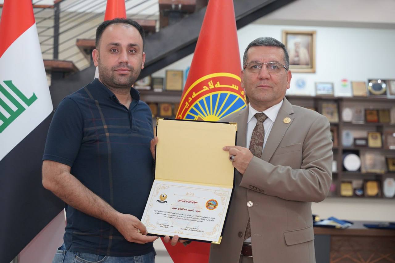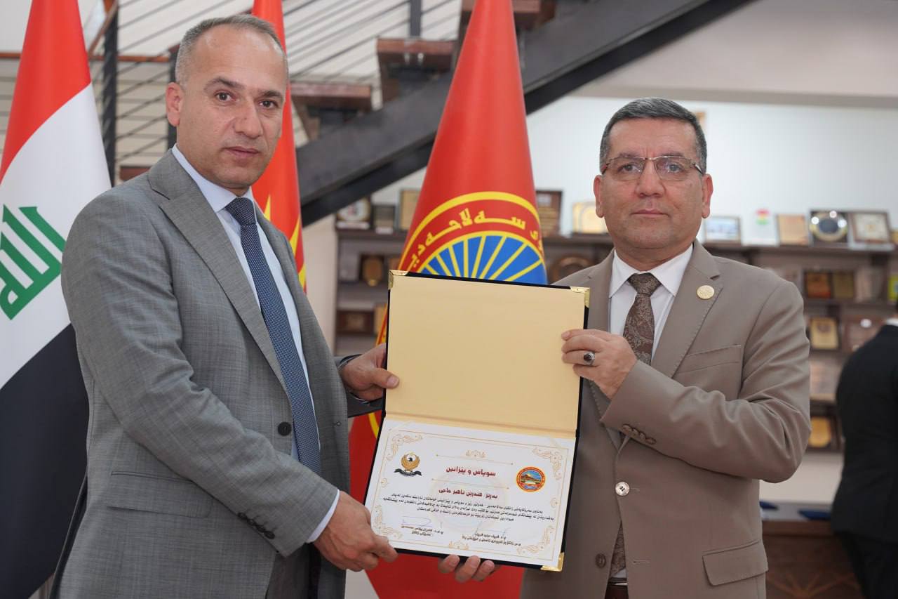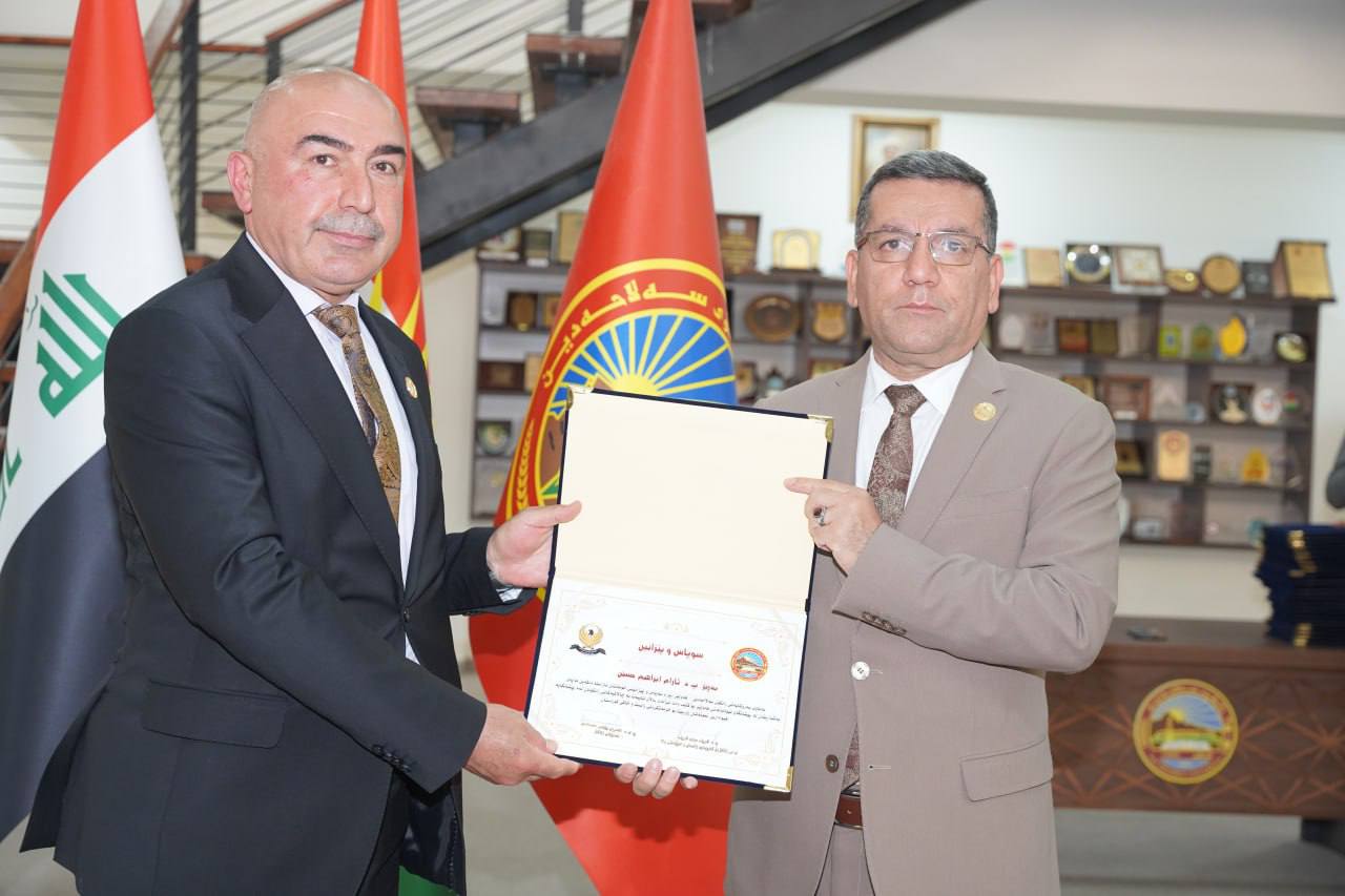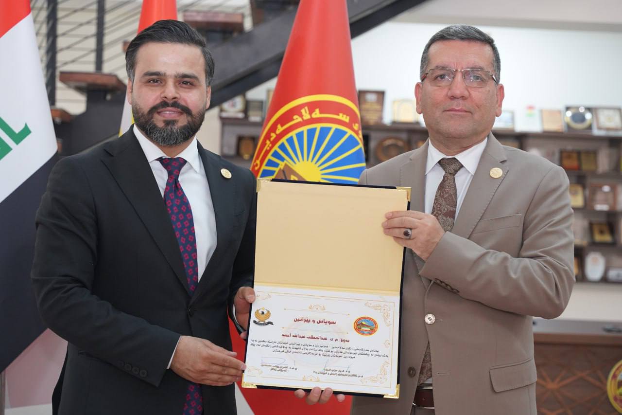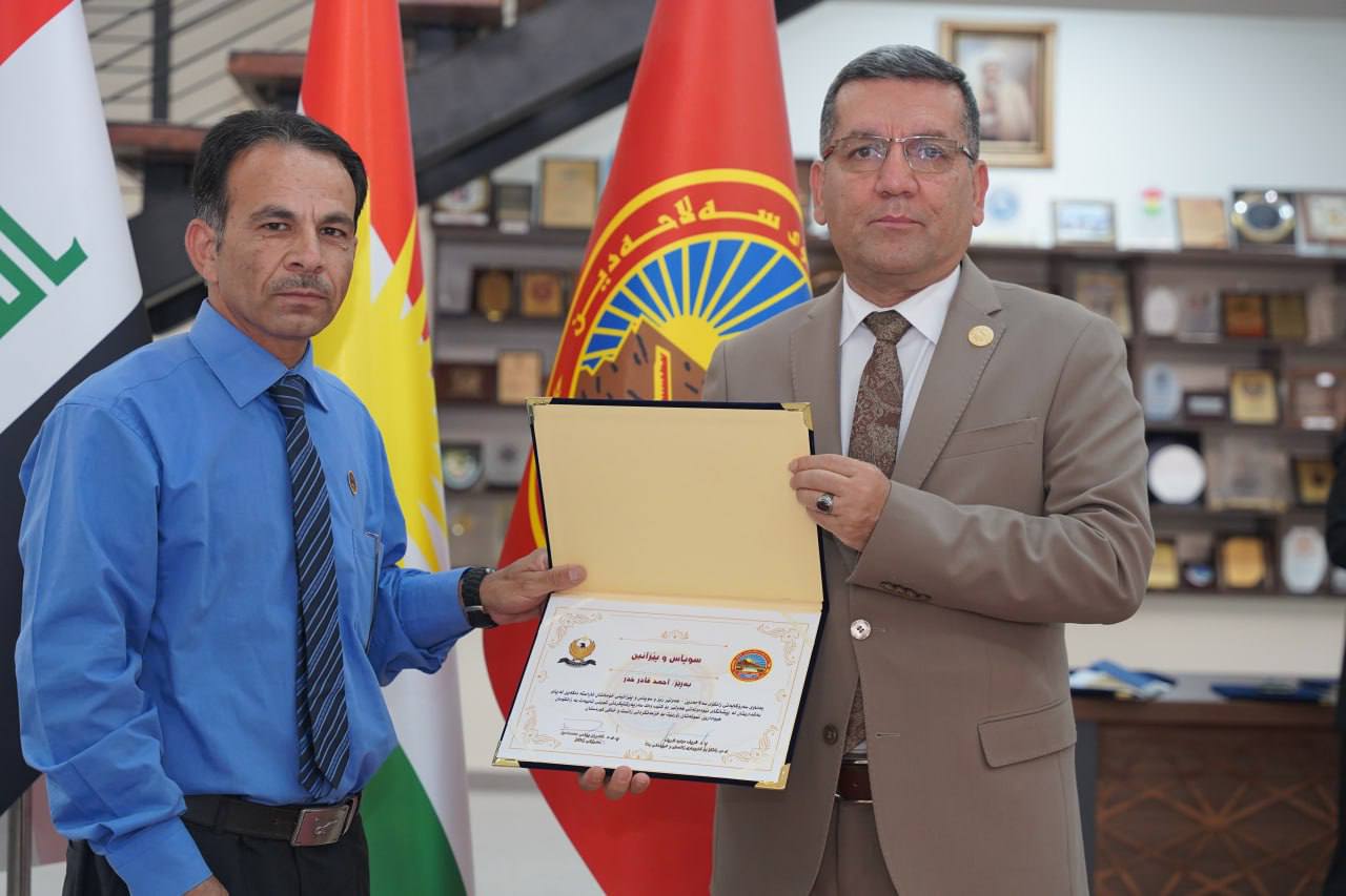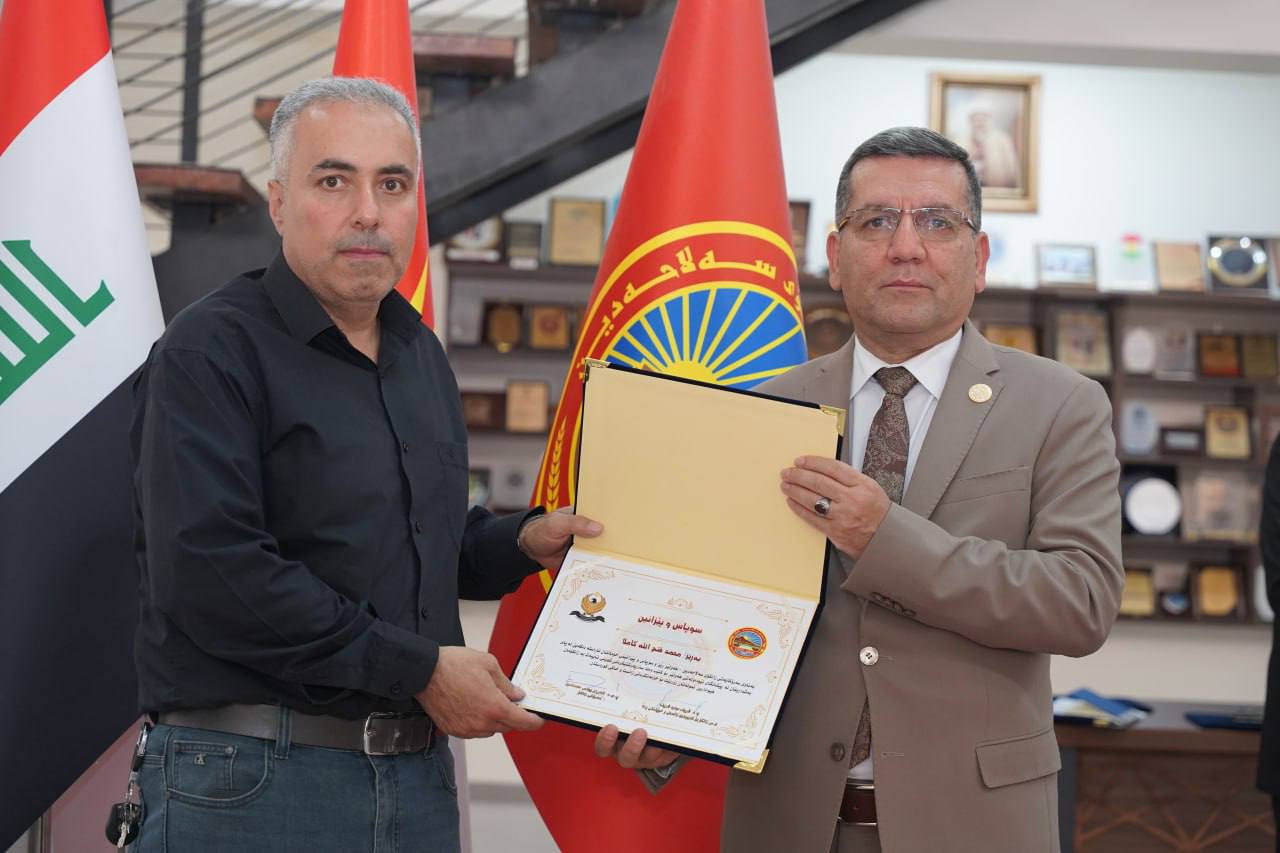 Today, 28 April 2025, Asst. Prof. Dr Kamaran Younis M. Amin, President of Salahaddin University-Erbil (SUE), accompanied by Prof. Dr Shareef Maulod Shareef, Vice-President for Scientific Affairs and Postgraduate Studies, along with a number of administrative officials, honoured and presented certificates of appreciation to the staff who participated in the International Book Fair.