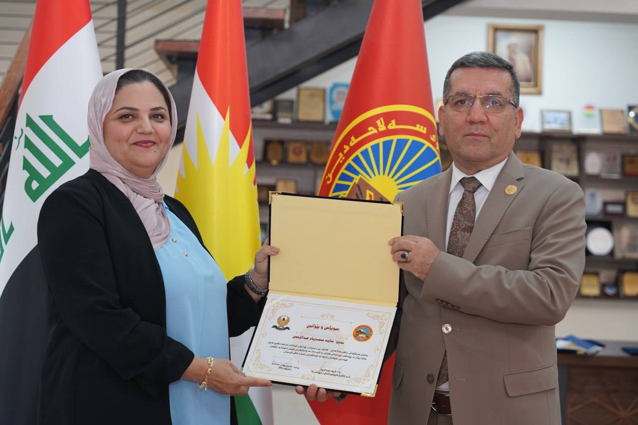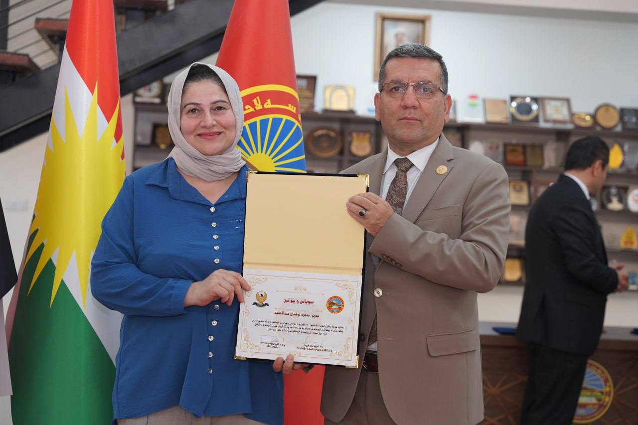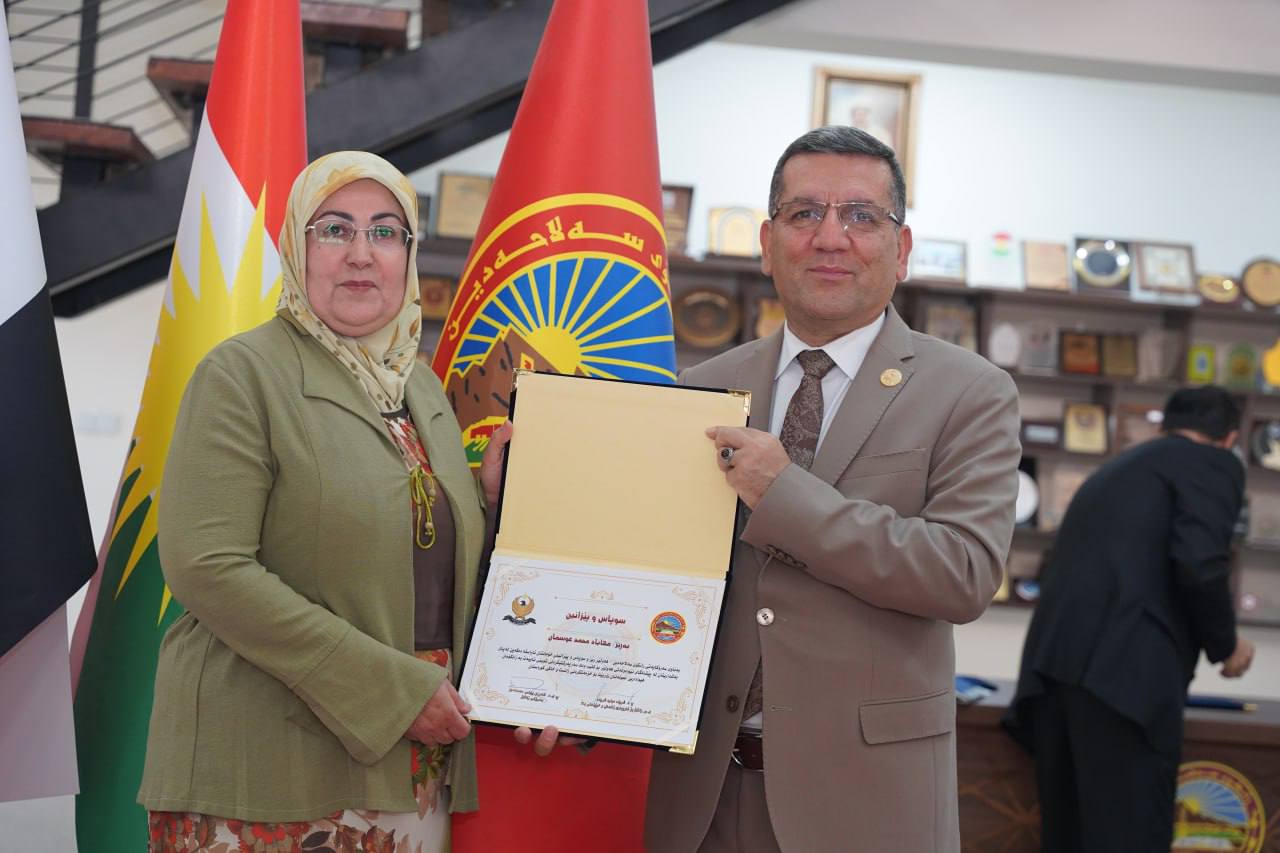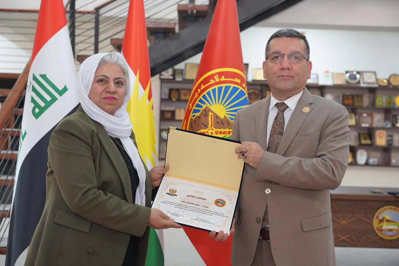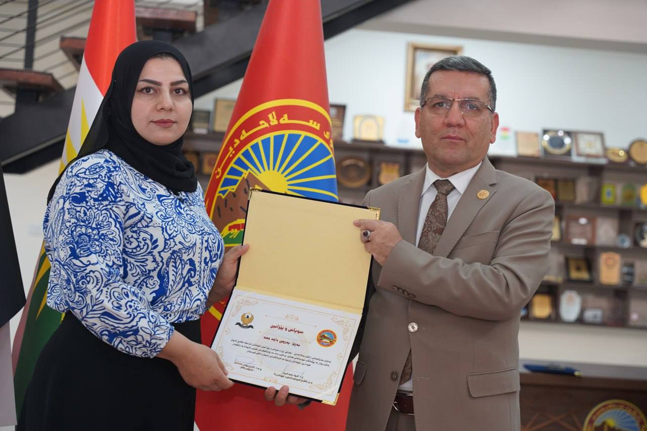 Today, 28 April 2025, Asst. Prof. Dr Kamaran Younis M. Amin, President of Salahaddin University-Erbil (SUE), accompanied by Prof. Dr Shareef Maulod Shareef, Vice-President for Scientific Affairs and Postgraduate Studies, along with a number of administrative officials, honoured and presented certificates of appreciation to the staff who participated in the International Book Fair.