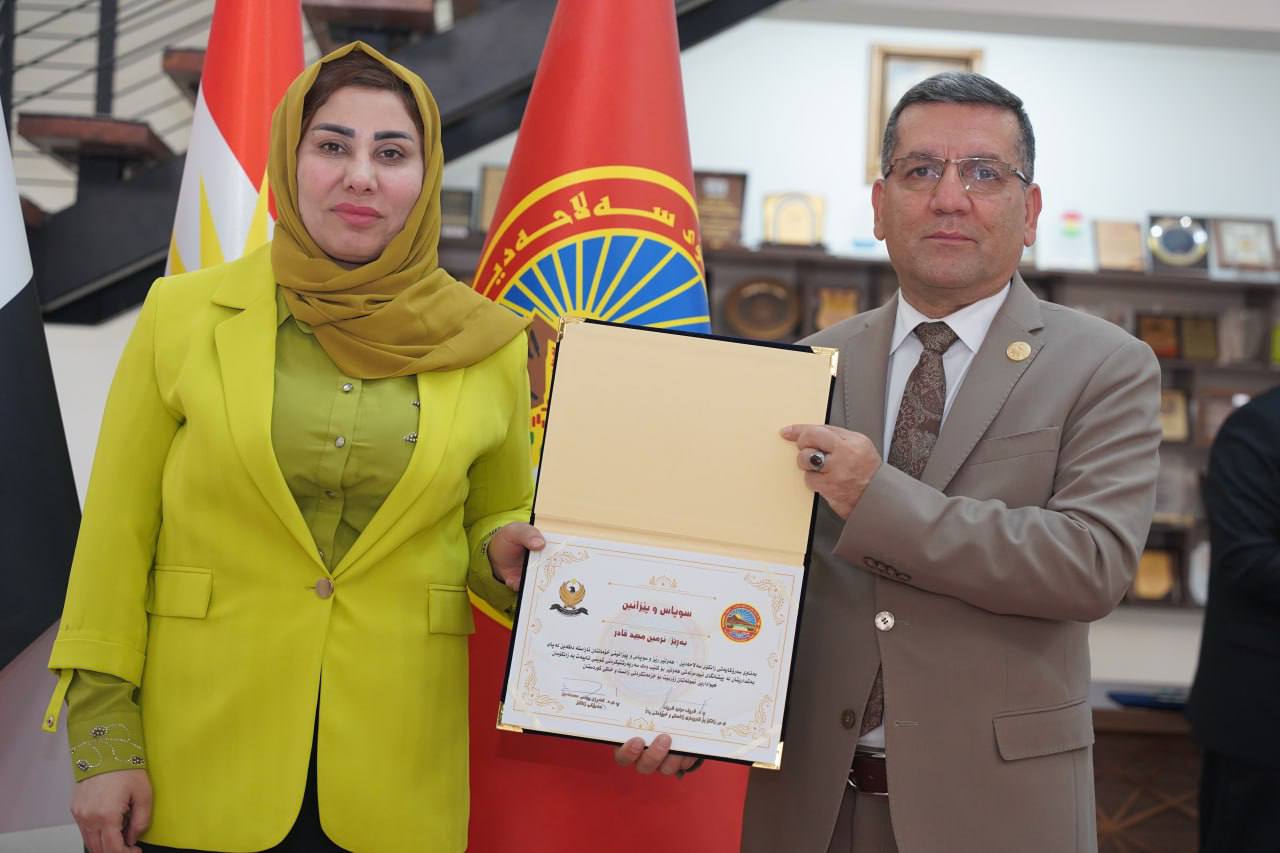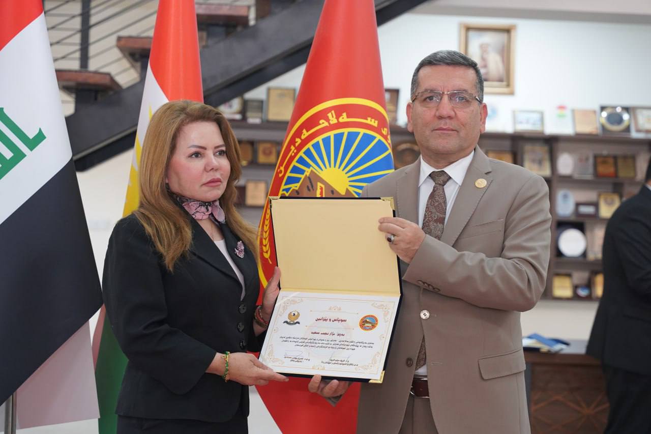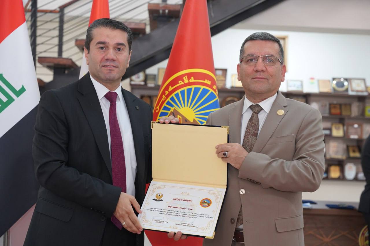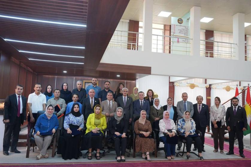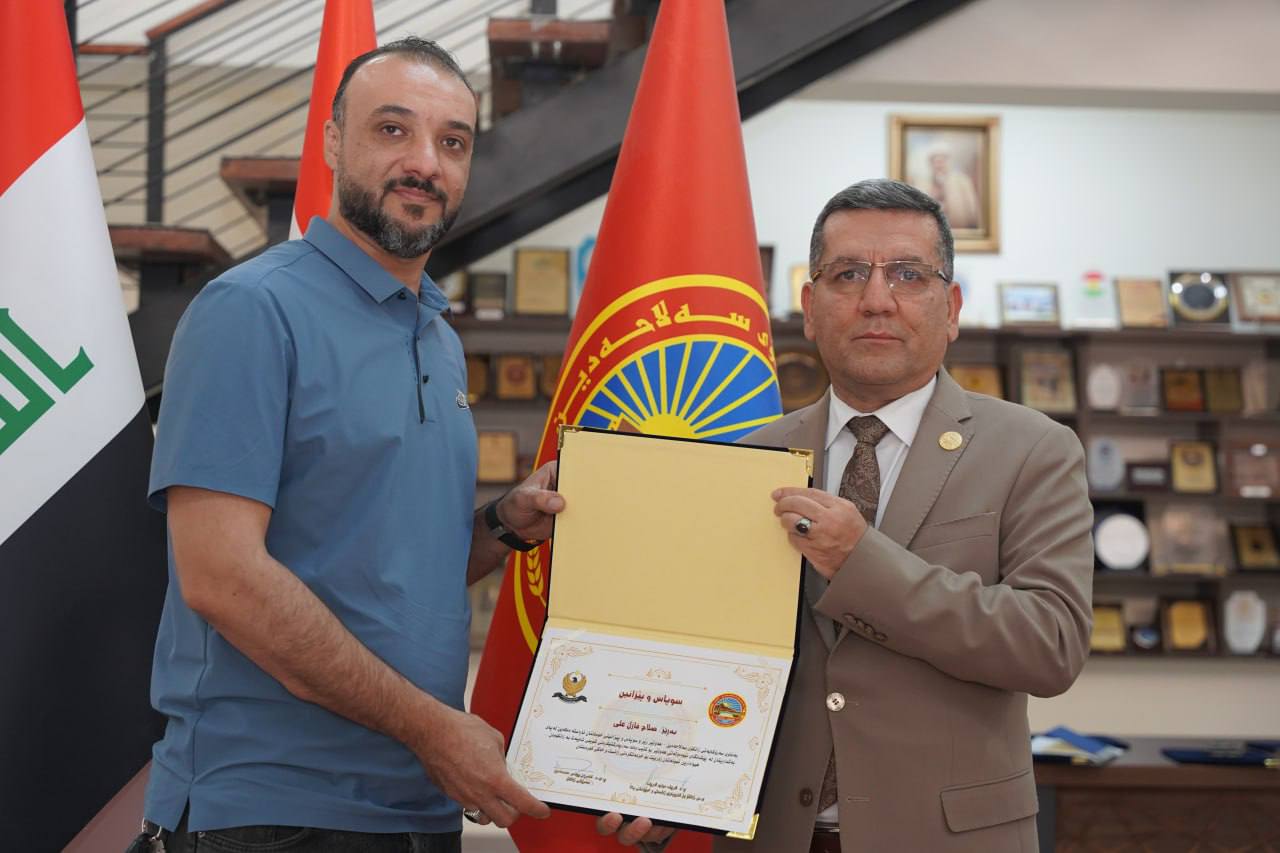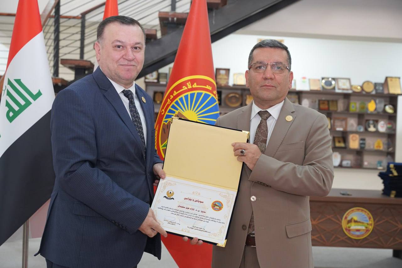 Today, 28 April 2025, Asst. Prof. Dr Kamaran Younis M. Amin, President of Salahaddin University-Erbil (SUE), accompanied by Prof. Dr Shareef Maulod Shareef, Vice-President for Scientific Affairs and Postgraduate Studies, along with a number of administrative officials, honoured and presented certificates of appreciation to the staff who participated in the International Book Fair.