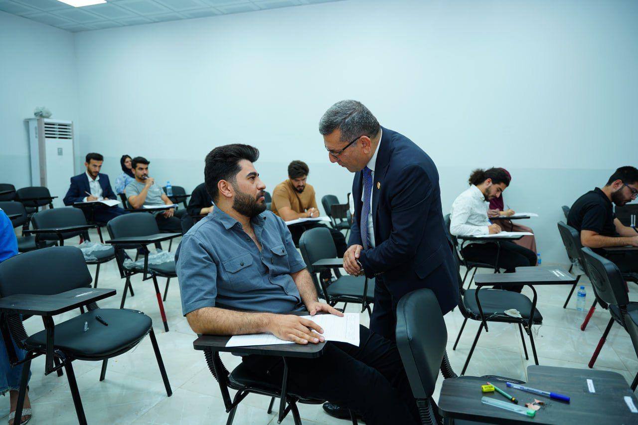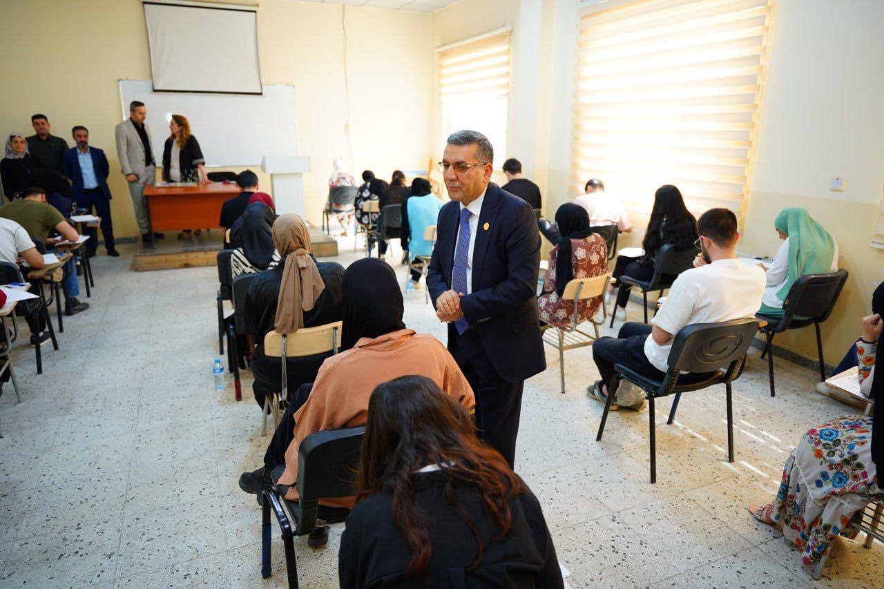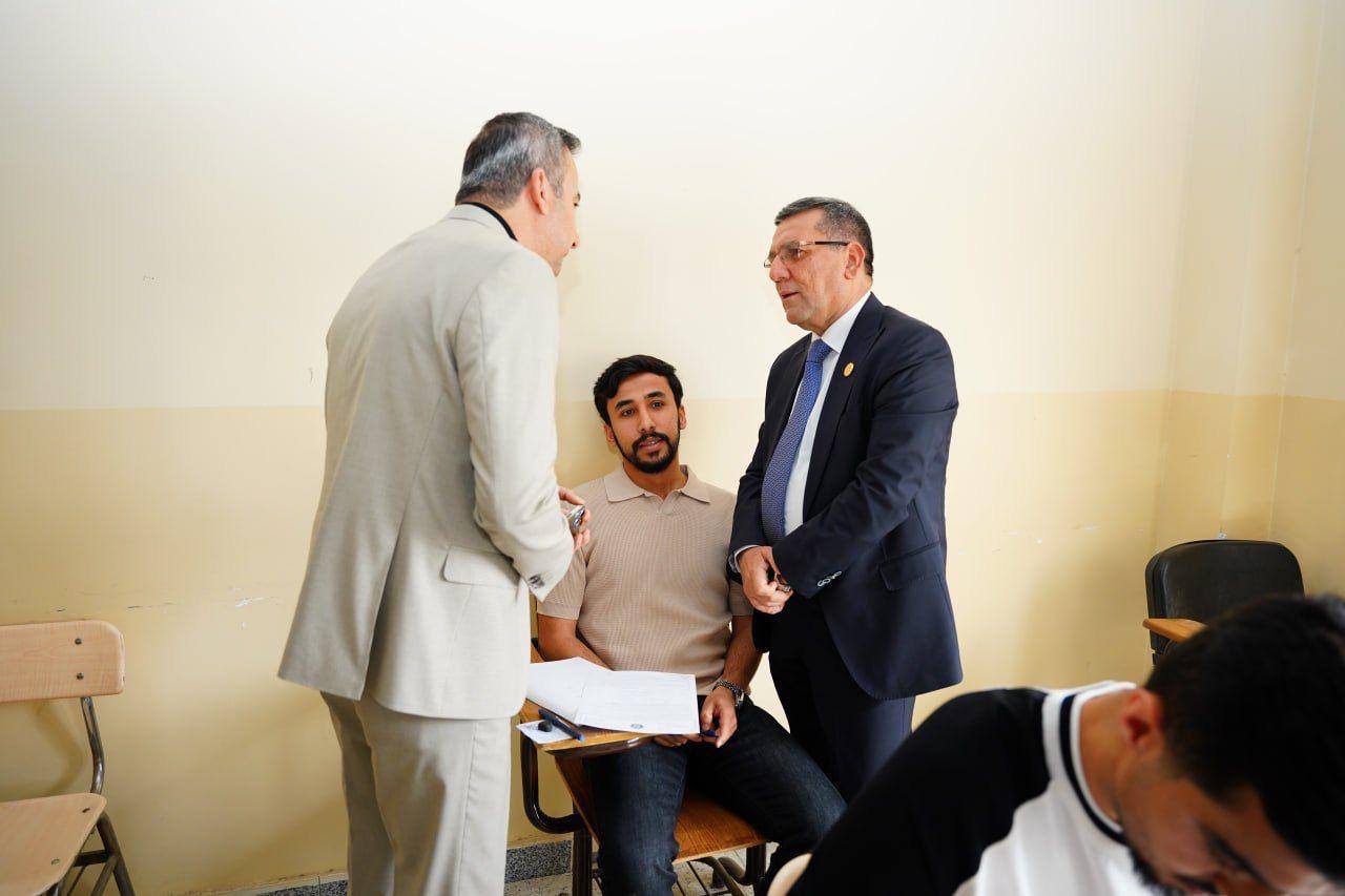 On 19 May 2025, Asst. Prof. Dr Kamaran Younis M. Amin, President of Salahaddin University-Erbil, visited the College of Arts and the Department of Kurdish Language. Accompanied by Prof. Dr Saman Hussein - Dean of the College of Languages, and Prof. Dr Musa Mohammed - Dean of the College of Arts, the President toured the exam halls and examination committees of the affiliated colleges. He held discussions with the heads and members of the examination boards and extended his best wishes for a successful examination period.