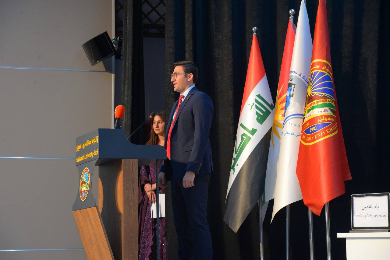 At the beginning of the ceremony, the President of Salahaddin University delivered a speech highlighting the important role of the Kurdistani diaspora in representing and promoting the Kurdish cause internationally. He emphasised that the diaspora plays a vital role in raising awareness of the Kurdish issue and supporting the legitimate rights of the people of Kurdistan.