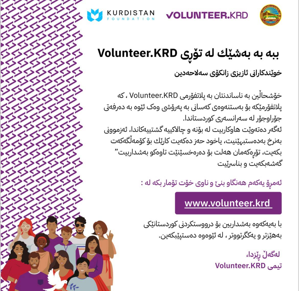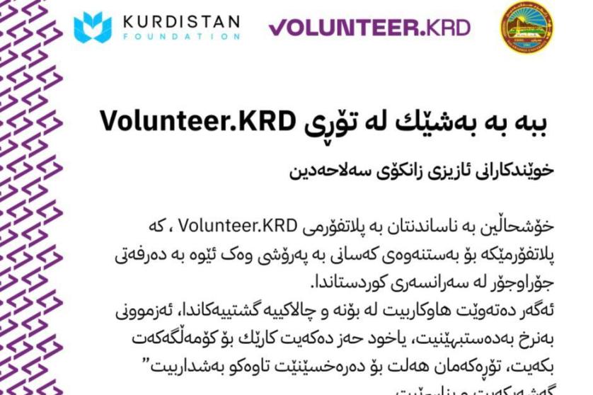 قوتابییانی ئازیزی زانکۆی سەلاحەدین خۆشحاڵین بە ناساندنتان بە پلاتفۆرمی Volunteer.KRD