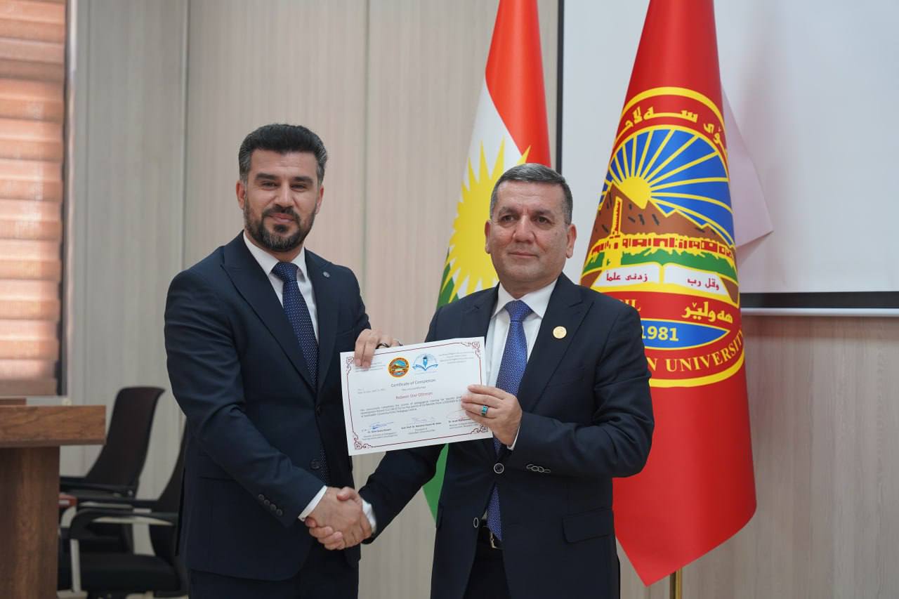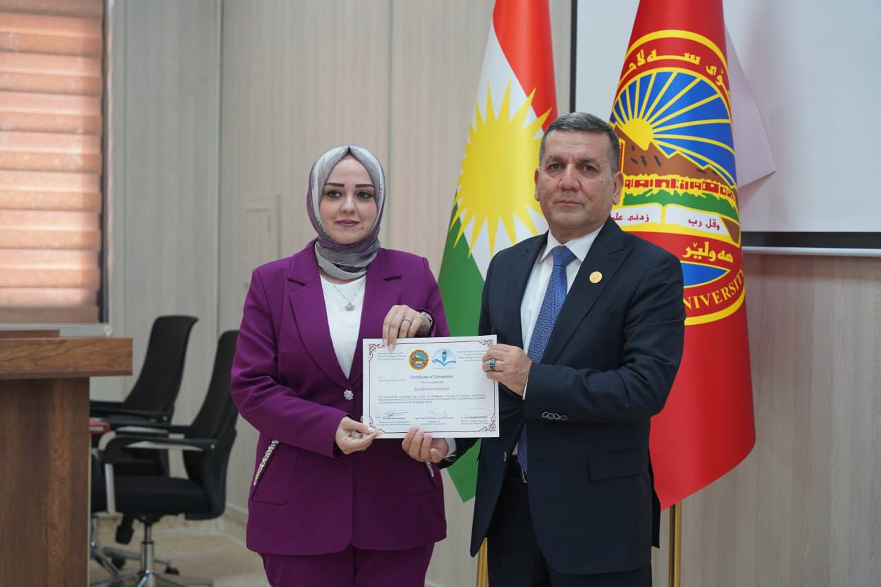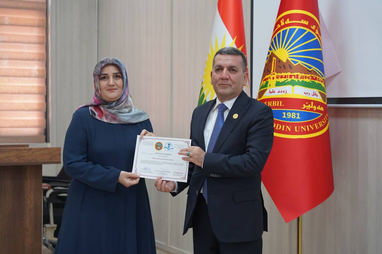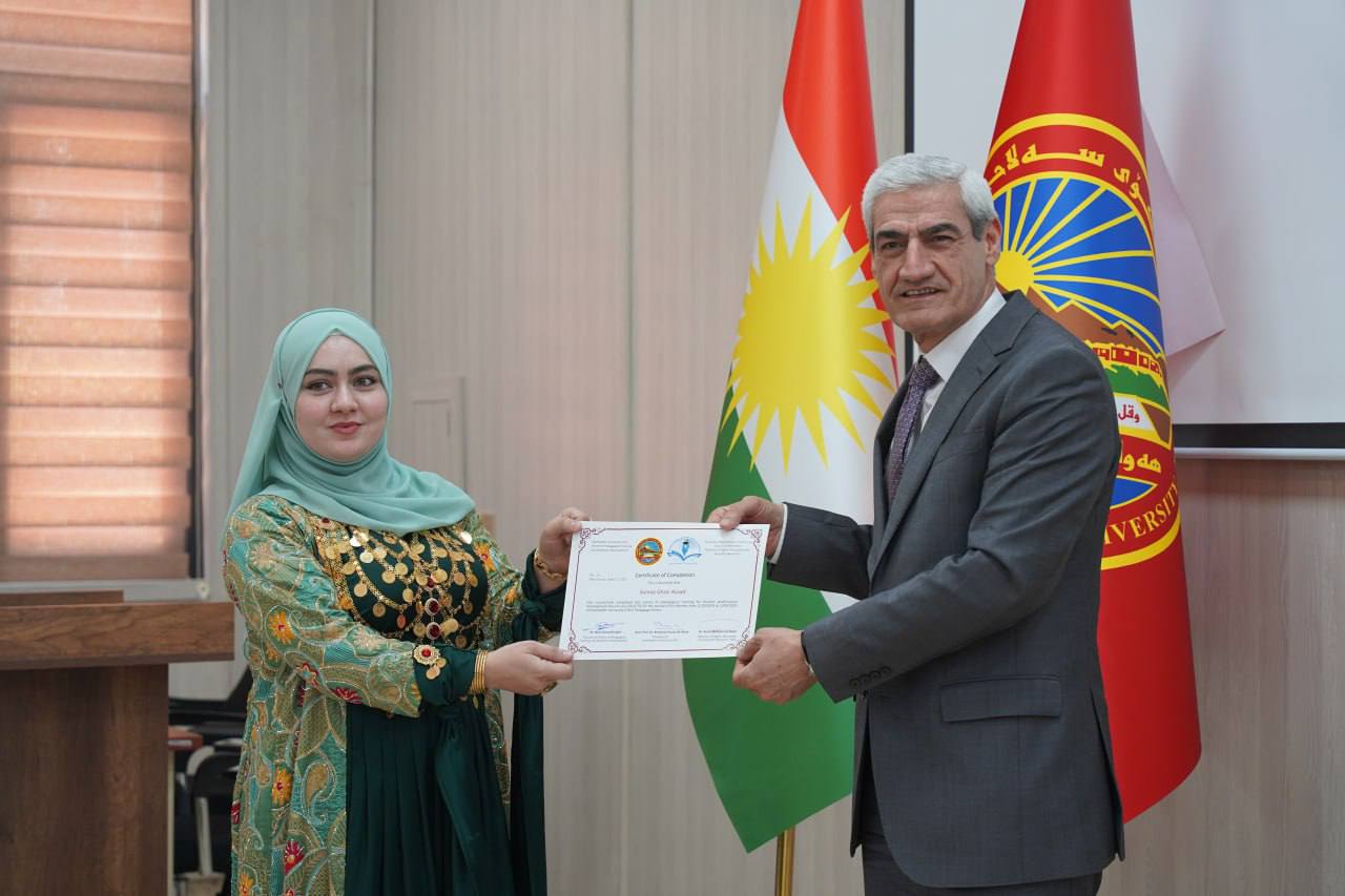 ئەمڕۆ ڕێککەوتی ۱۱ـی ٥ ـی ۲٠۲٥ بە ئامادەبوونی " پ.ی.د.کامەران یونس محمدئەمین" سەرۆکی زانکۆی سەلاحەدین و " پ.ی.د.شریف مولود شریف" یاریدەدەری سەرۆکی زانکۆ بۆ کاروباری زاستی و خوێندنی باڵا و " د.وەلا غازی دزەیی" بەڕێوەبەری سەنتەری پێداگۆجی بڕوانامە بڕوانامە بەسەر دەرچووانی خولی ۱۱ ی پێداگۆجی بەڕێوەچوو کە ژمارەیان ۳۸ دەرچوو بوو.