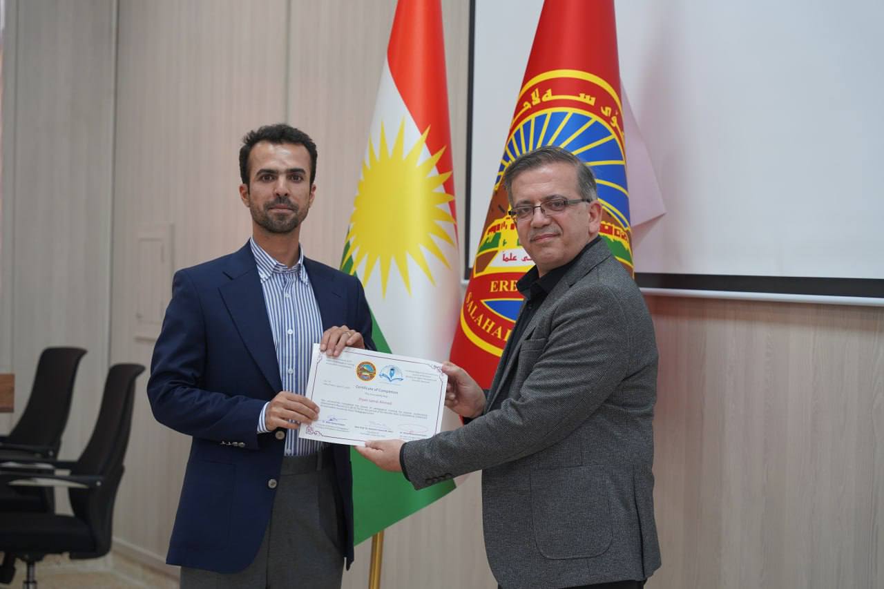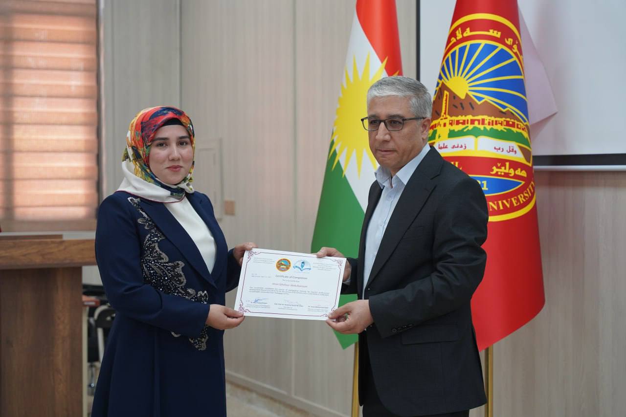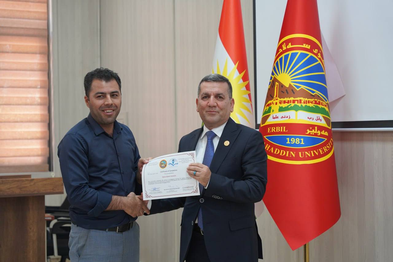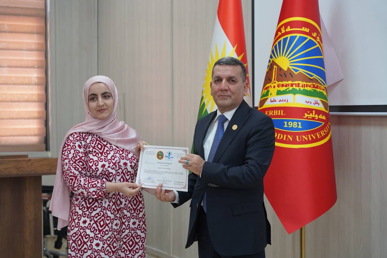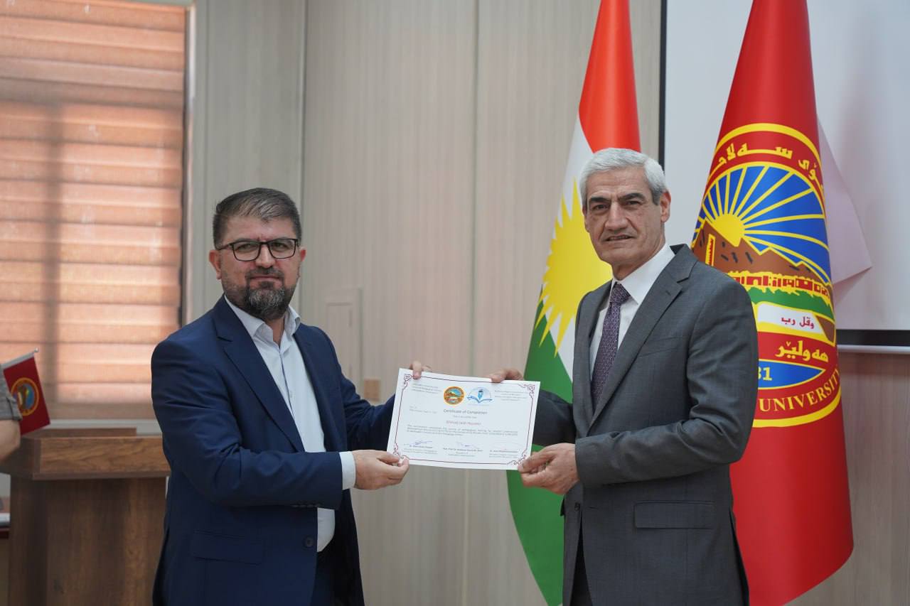 ئەمڕۆ ڕێککەوتی ۱۱ـی ٥ ـی ۲٠۲٥ بە ئامادەبوونی " پ.ی.د.کامەران یونس محمدئەمین" سەرۆکی زانکۆی سەلاحەدین و " پ.ی.د.شریف مولود شریف" یاریدەدەری سەرۆکی زانکۆ بۆ کاروباری زاستی و خوێندنی باڵا و " د.وەلا غازی دزەیی" بەڕێوەبەری سەنتەری پێداگۆجی بڕوانامە بڕوانامە بەسەر دەرچووانی خولی ۱۱ ی پێداگۆجی بەڕێوەچوو کە ژمارەیان ۳۸ دەرچوو بوو.