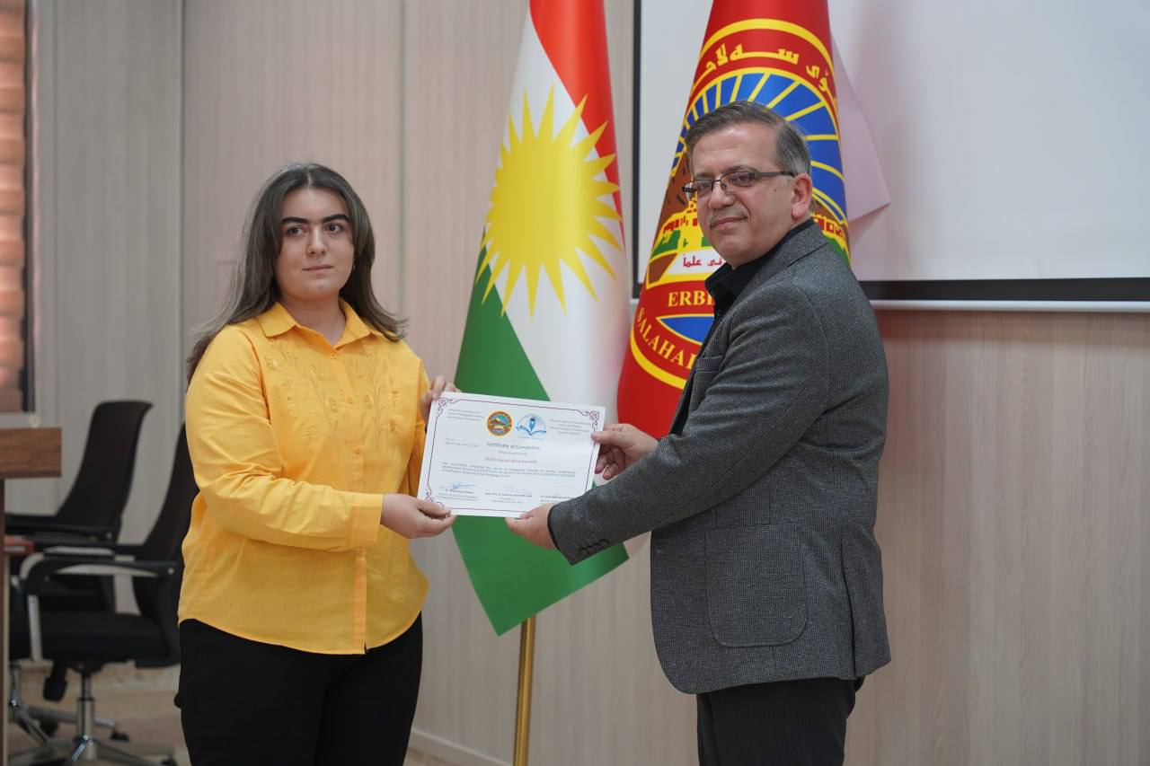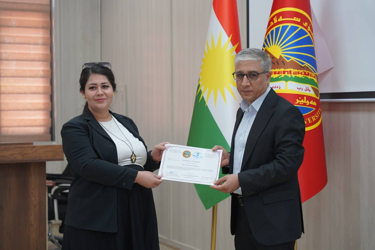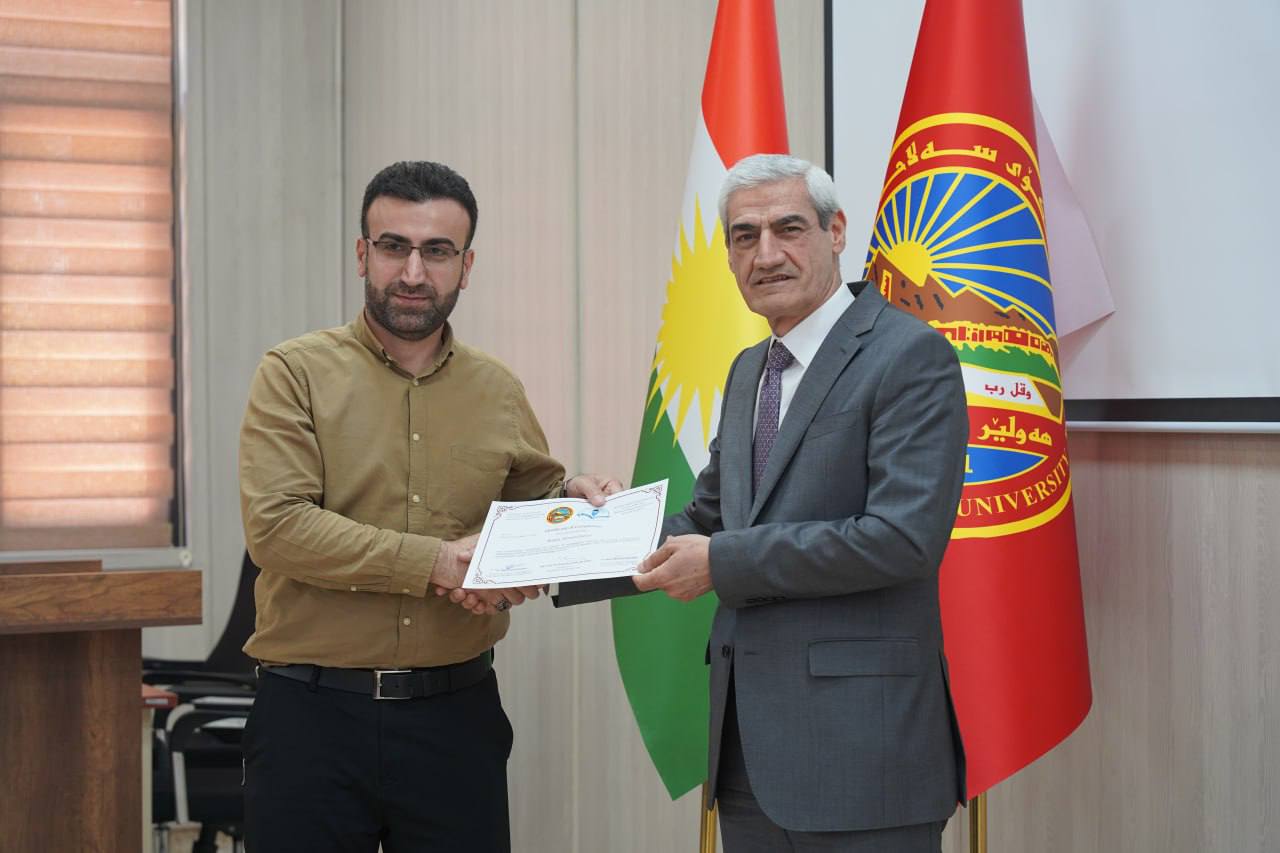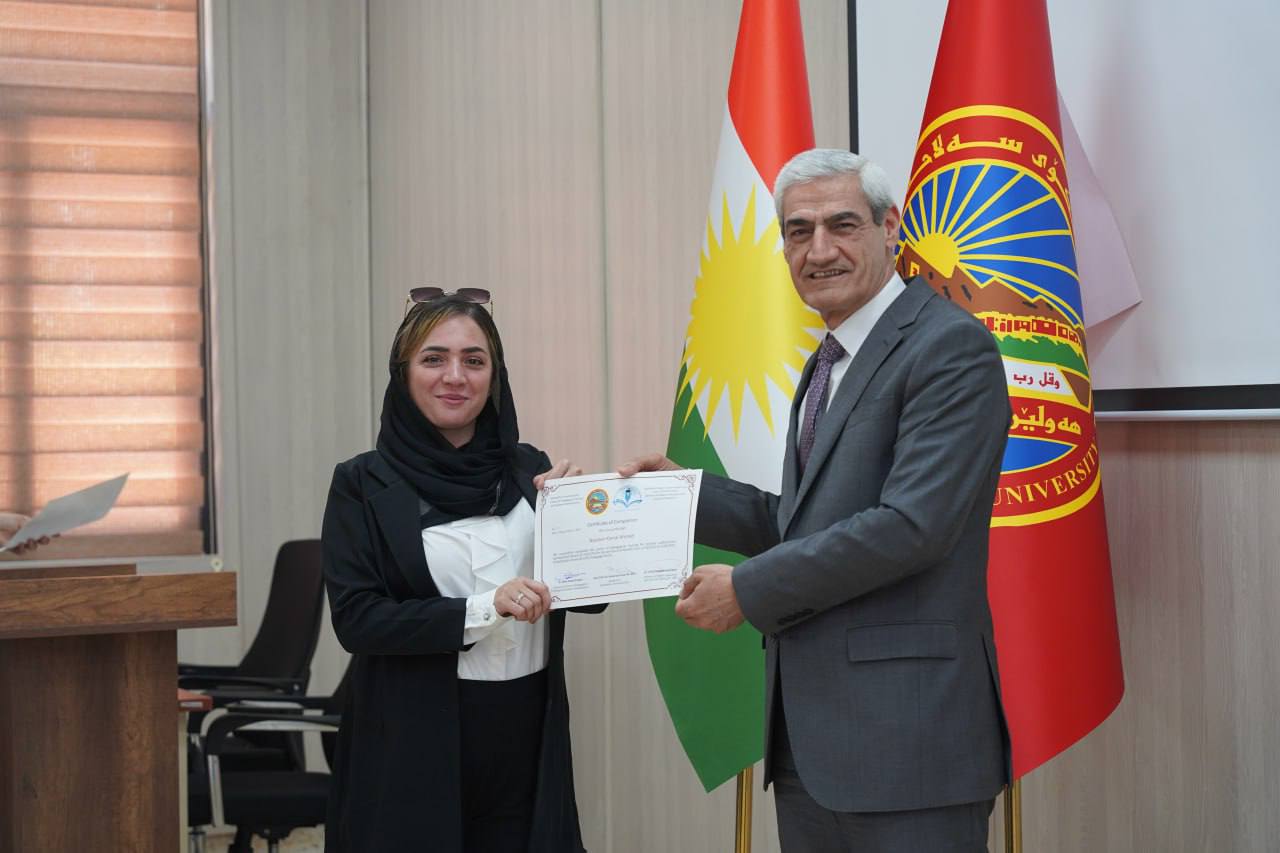 ئەمڕۆ ڕێککەوتی ۱۱ـی ٥ ـی ۲٠۲٥ بە ئامادەبوونی " پ.ی.د.کامەران یونس محمدئەمین" سەرۆکی زانکۆی سەلاحەدین و " پ.ی.د.شریف مولود شریف" یاریدەدەری سەرۆکی زانکۆ بۆ کاروباری زاستی و خوێندنی باڵا و " د.وەلا غازی دزەیی" بەڕێوەبەری سەنتەری پێداگۆجی بڕوانامە بڕوانامە بەسەر دەرچووانی خولی ۱۱ ی پێداگۆجی بەڕێوەچوو کە ژمارەیان ۳۸ دەرچوو بوو.