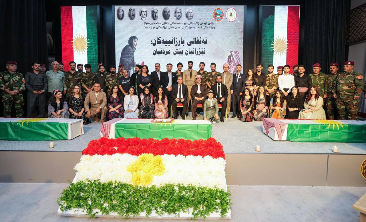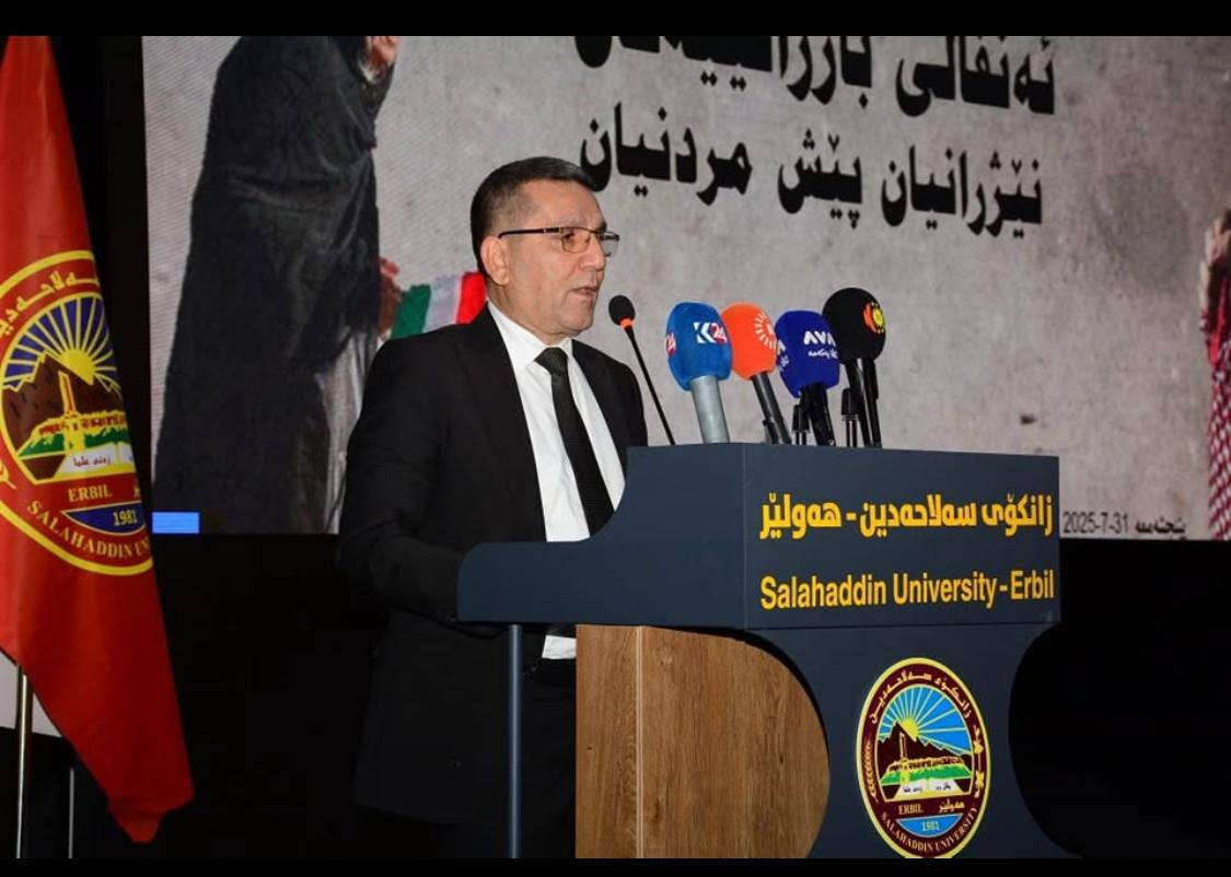 ئەمڕۆ ڕێککەوتی ٣١ـی ٧ـی ٢٠٢٥ بە ئامادەبوونی “ مەلا مستەفا بارزانی ” نوێنەری “سەرۆک بارزانی“ و “د.پشتیوان سادق” بەرپرسى مەکتەبى ڕێکخستنى پارتى لە هەولێر و “ڕێبەر ئەحمەد” وەزیرى ناوخۆ و “ئومێد خۆشناو”پارێزگارى هەولێر و “ پ.ی.د.ئەمیر چالی “ بریکاری وەزارەتی خوێندنی باڵاو توێژینەوەی زانستی و “ پ.د.کامەران یونس “ سەرۆکی زانکۆی سەلاحەدین و “چیا هەرکی و چنار سەعد عەبدوڵڵا،”یاریدەرانی بەرپرسی مەکتەبی ڕێکخستنی پارتی لەهەولێر و “د.زانا مەلاخالید” بەپرسى لقى٢و “ئاری نانەکەلی” بەرپرسی لقى١٦ و “ د.ئامانج برادۆستی” بەرپرسی ناوچەی زانکۆ و ژمارەیەکی دیکەى لە هاونیشتمانیان و بنەماڵە و خانەوادەی سەربەرزی ئەنفال و شەهیدان و بەرپرسانی حزبی و حکومی لەژێر دروشمی “ ئەنفالی بارزانییەکان، نێژرانیان پێش مردنیان “ لە زانكۆی سهلاحهدین-هەولێر بە هەماهەنگی لیژنهی ناوچهی زانكۆ - لقی دوو ڕێوڕەسمێکی تایبەت بۆ بەرزڕاگرتنی یادی ئەنفالی بارزانییەکان بەڕێوەچوو.