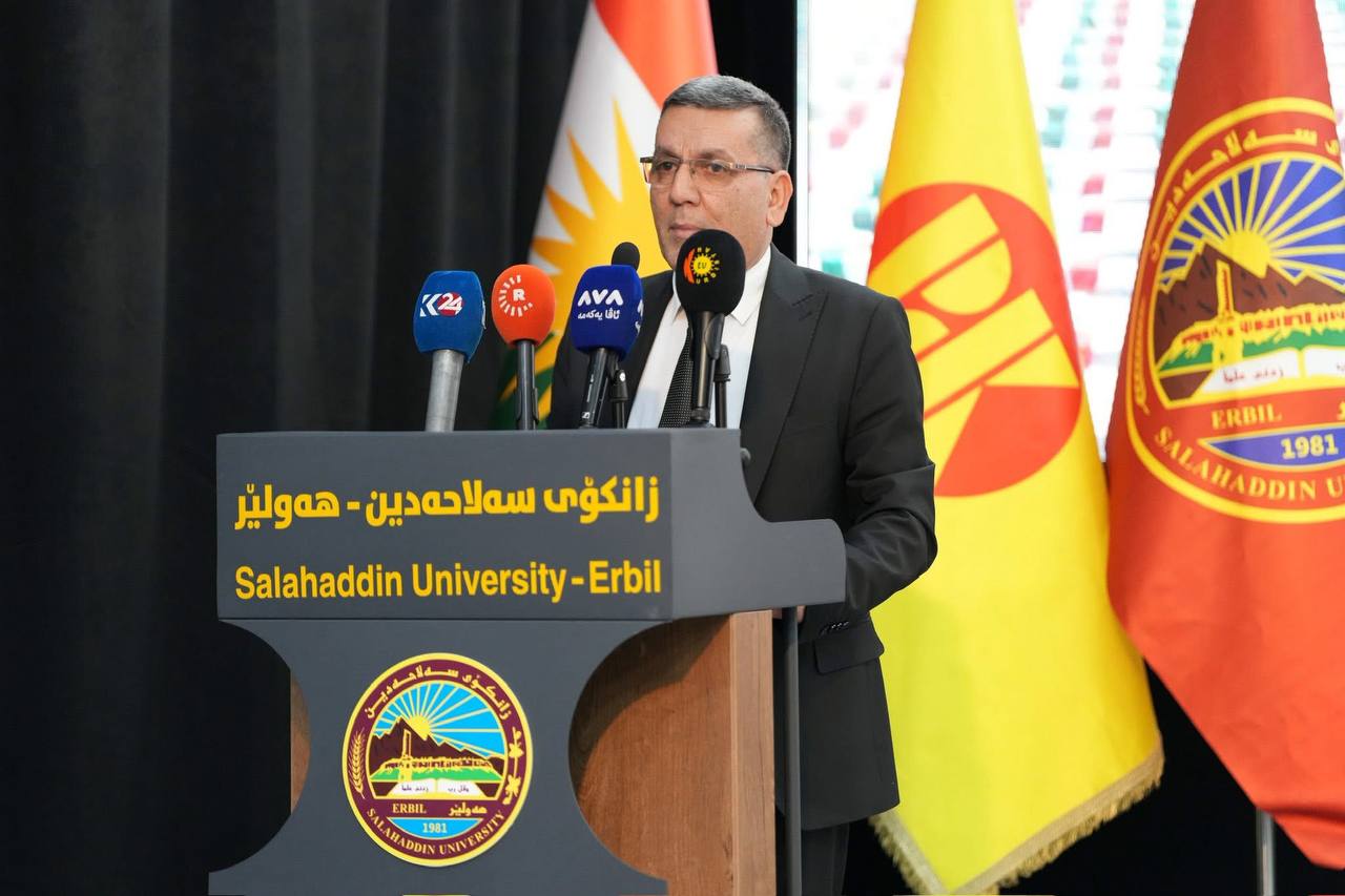 لەسەرەتای ڕێوڕەسمەکە سەرۆکی زانکۆی سەلاحەدین وتارێکی پێشکەشکرد و ئاماژەی بەوەکرد