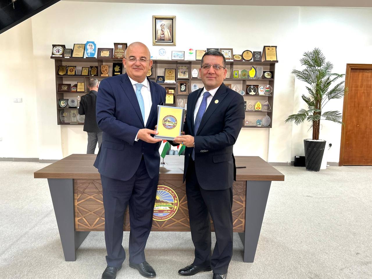 لەسەرەتای دەیدارەکە سەرۆکی زانکۆی سەلاحەین خۆشحاڵی خۆی بۆ ئەم دیدارە دەربڕی و ئامادەیی خۆی و زانکۆی سەلاحەدینی بۆ هەموو هەماهەنگییەکی ئەکادیمی دەربڕی.