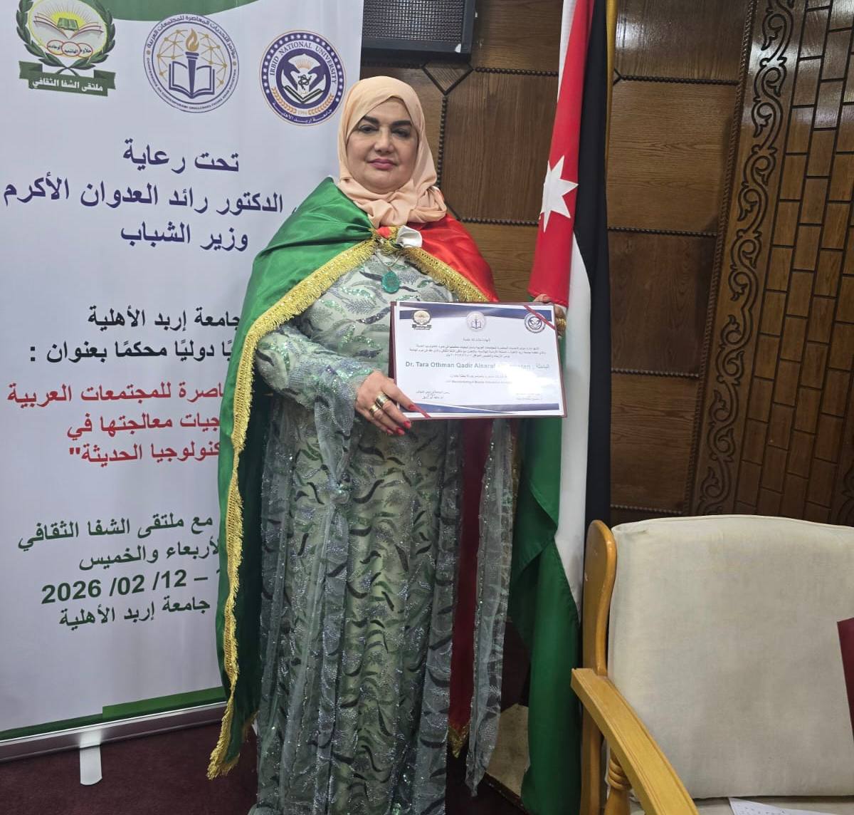 Prof. Dr Tara Osman, a lecturer at the College of Engineering, participated as the sole Kurdish representative in the international conference titled: "Contemporary Challenges in Arab Societies and Strategies for Addressing Them in Light of Modern Technology," held in Jordan.